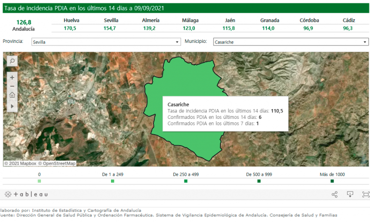 Según los datos oficiales publicados por el Instituto de Estadística y Cartografía de Andalucía y la Consejería de Salud y Familias, no se han registrado nuevos contagios por COVID19 en Casariche durante las últimas 24 horas.