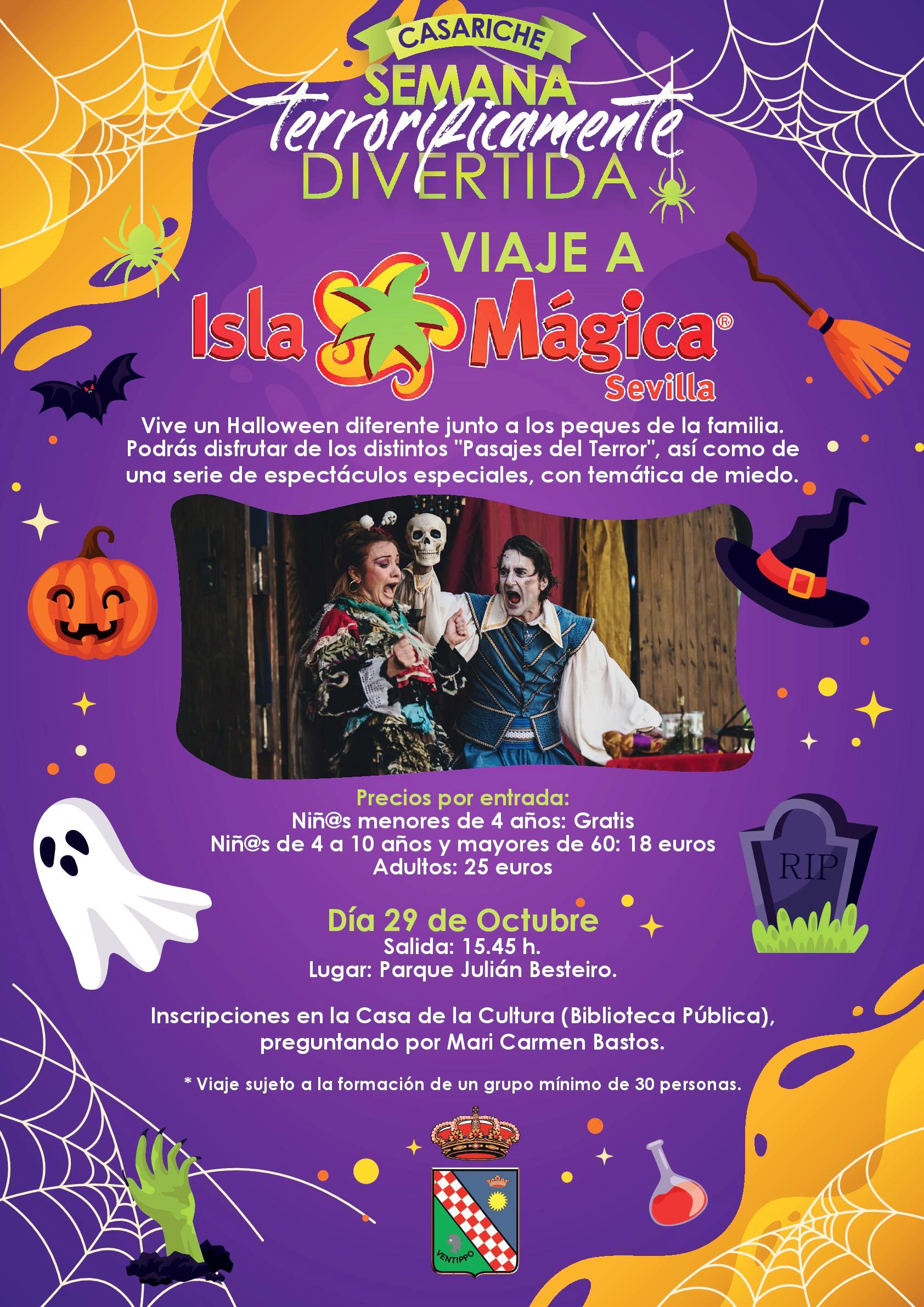 Una de las propuestas diseñadas por las Delegaciones de Cultura y Festejos para conmemorar Halloween 2021 es un Viaje a Isla Mágica el próximo 29 de Octubre para vivir un Halloween diferente junto a los peques de la familia, teniendo oportunidad de disfrutar de los distintos «Pasajes del Terror», así como de una serie de espectáculos especiales, con temática de miedo.