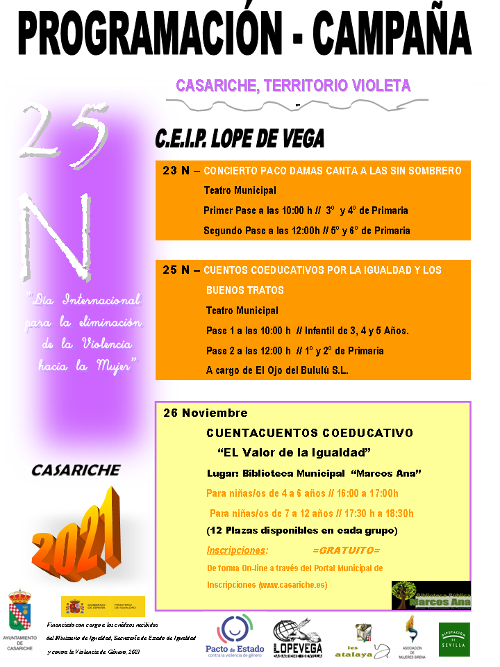 CONSULTAR PROGRAMACIÓN 25N 2021 PARA CEIP LOPE DE VEGA