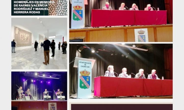 El Teatro Municipal de Casariche acogió el sábado 27 de Noviembre los homenajes póstumos a Rafael Valencia Rodríguez y a Manuel Herrera Rodas. Por la mañana, de 11.30 h a 13.30 h, se llevó a cabo el homenaje al arabista y profesor Rafael Valencia Rodríguez, fallecido en Junio de 2020 y muy vinculado a nuestro pueblo por haber dirigido en varias ediciones los Cursos de Verano de Casariche, organizados por nuestro Ayuntamiento y ASACHICA (la Asociación de Amigos de la Historia y la Cultura de Casariche) en colaboración con la Universidad de Sevilla (US). El acto estuvo presentado por María de los Santos Parrado Marín, Teniente Alcalde de nuestro Ayuntamiento, y contó con la participación de José Javier Martos Ramos, Decano de la Facultad de Filología US, Noel Rivas Bravo, Profesor de la US y Miguel Polaino Ors, Vicedecano de la Facultad de Derecho US, que hicieron un emotivo y cariñoso repaso por la figura de Rafael, tanto como persona como por su dilatada trayectoria profesional.
