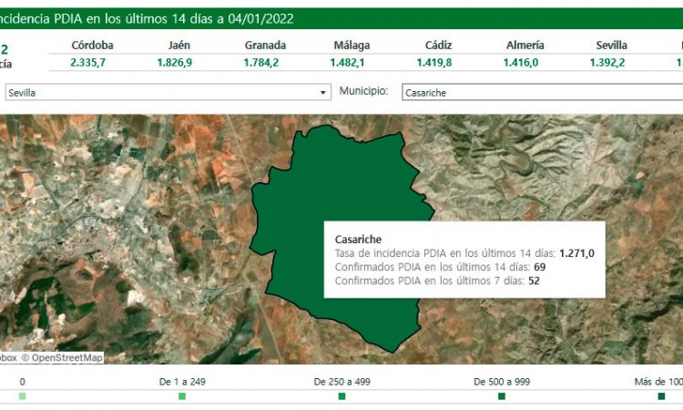 La incidencia acumulada asciende hasta los 1271’0 casos por cada 100.000 habitantes, habiendo 69 positivos en los últimos 14 días y 52 en los últimos 7 días.