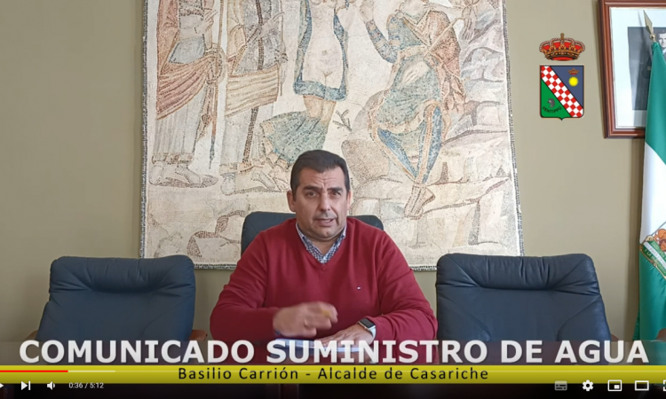 Nuestro Alcalde, Basilio Carrión, emite el siguiente comunicado sobre la situación del suministro de agua potable en nuestro municipio, ante la escasez de recursos hídricos y la falta de lluvias.
