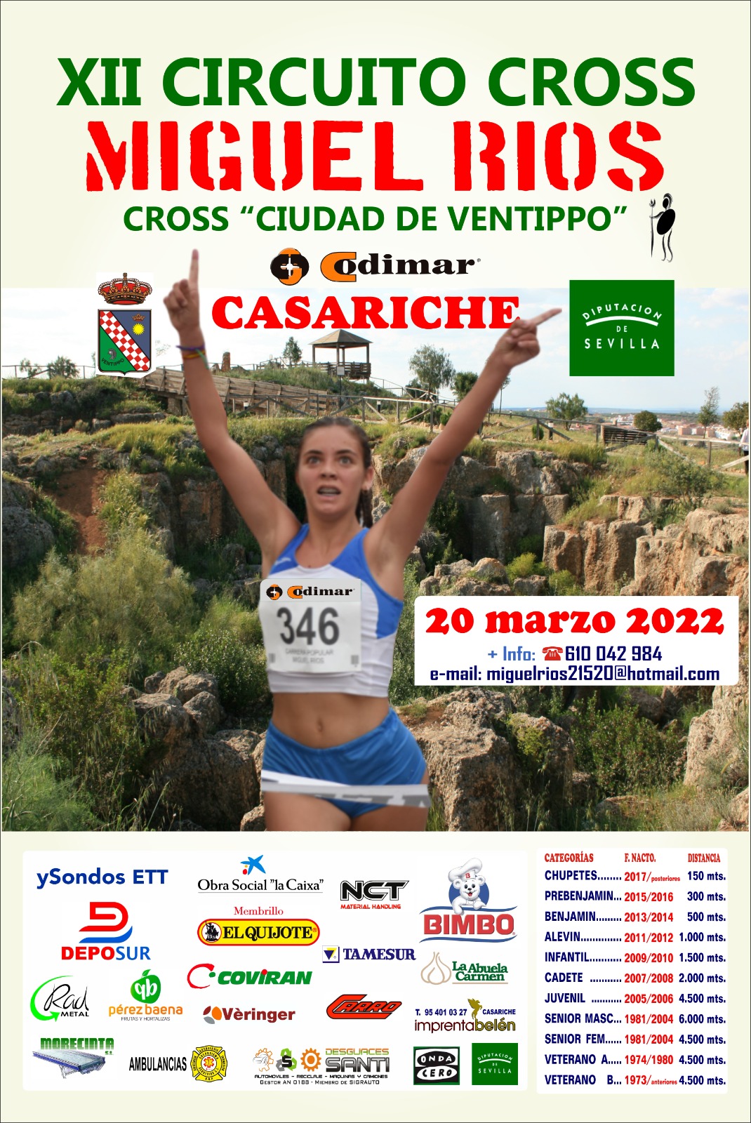 Con este cross arranca el XII Circuito de Cross de la Escuela Provincial de Atletismo Miguel Ríos, que consta de un total de 10 pruebas, tres de las cuales se celebrarán antes del verano y tienen ya fechas confirmadas (la segunda prueba de cross tendrá lugar el 3 de Abril en la Roda de Andalucía y la tercera, el 8 de Mayo en Badolatosa) .