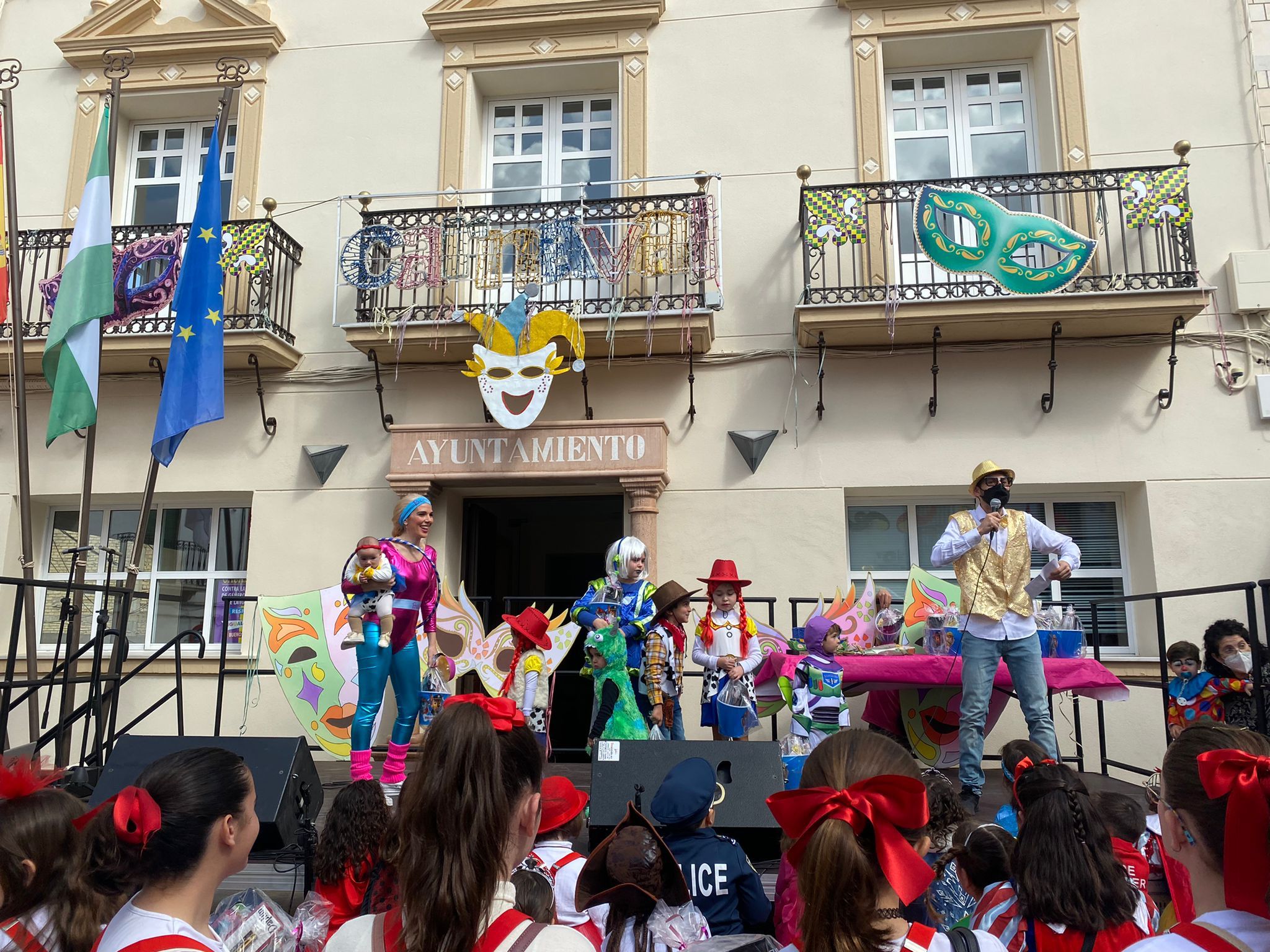 Además, todos los niños y niñas que acudieron ese día disfrazados y así lo desearon pudieron subir al escenario a mostrarnos sus bellos disfraces, recibiendo un obsequio al igual que los participantes en el concurso.