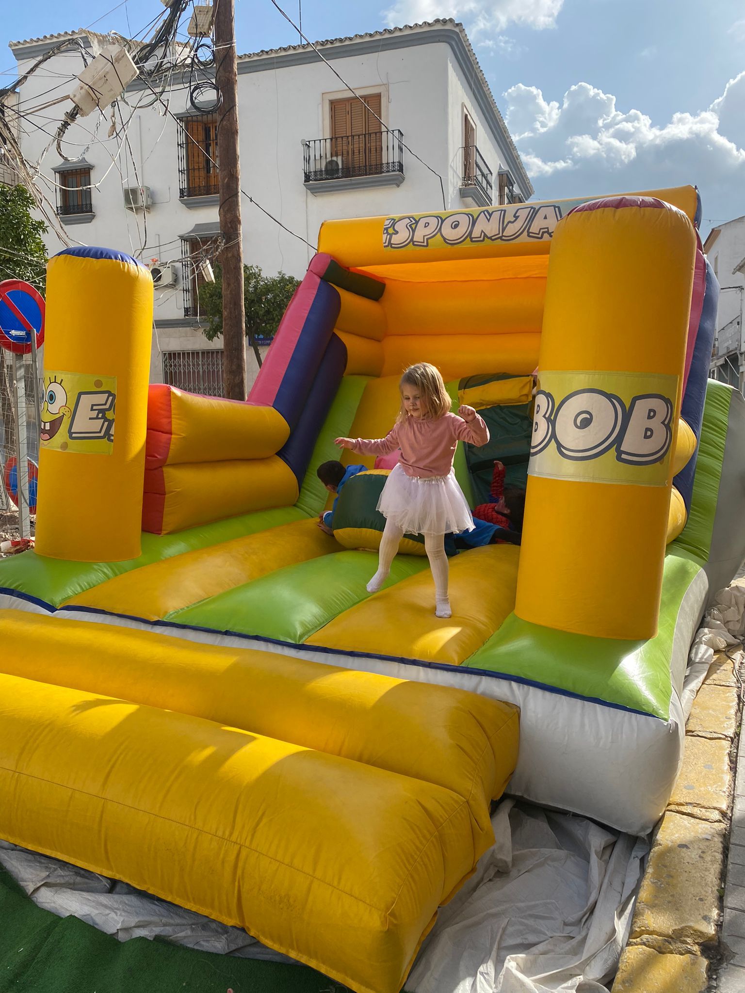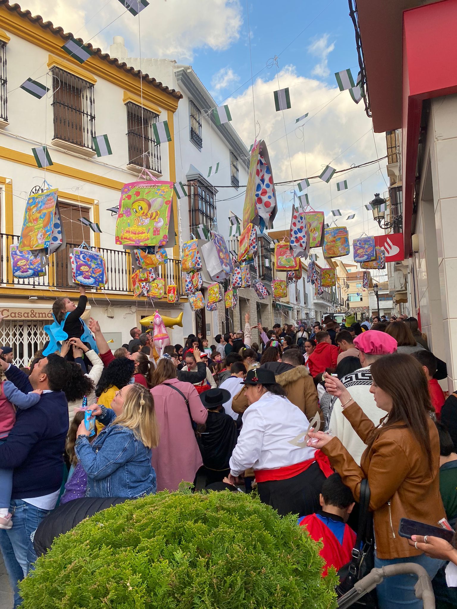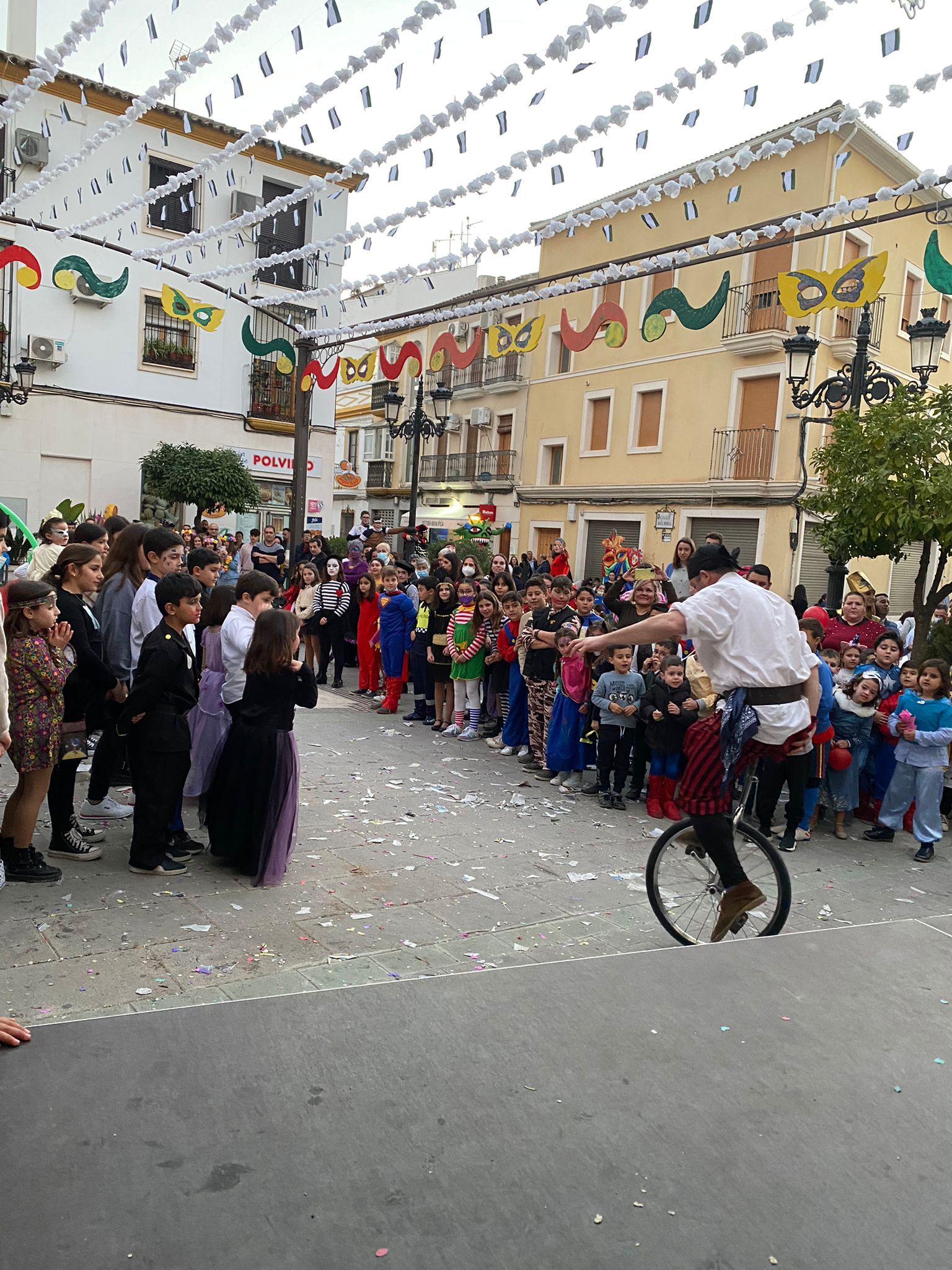 El ambiente carnavalero arrancó a las 12 del mediodía a cargo de la Charanga «Maestro Vitito», que estuvo acompañada de varios personajes Disney y de la Patrulla Canina, que encandilaron a los más pequeños, que también disfrutaron de lo lindo con los dos castillos hinchables, así como con los talleres infantiles (globoflexia, pintacaras, …) organizados para ellos.