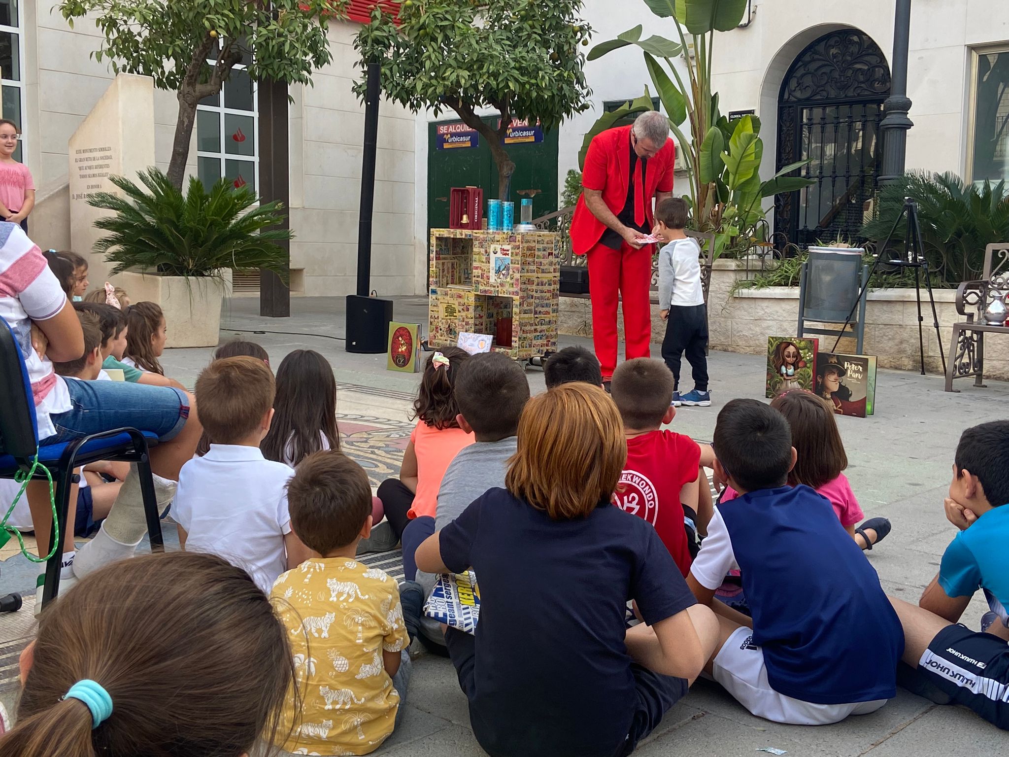 El Mago Luigi Ludus ofreció ayer en la Plaza Alcalde José Ramón Parrado Cano, a partir de las cinco de la tarde, su espectáculo ‘El mago de los libros’, un show en el que la magia nace del argumento de libros clásicos muy conocidos, como ‘El Mago de Oz’, ‘Peter Pan’, ‘Romeo y Julieta’, ‘Pulgarcita’ y ‘El Monstruo de los colores’.