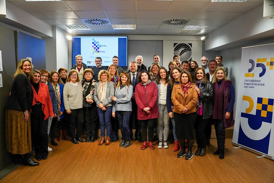 El Aula Abierta de Mayores de la Universidad Pablo de Olavide ha celebrado este lunes su I Encuentro de coordinadores locales con un acto presidido por el vicerrector de Cultura y Políticas Sociales, David Cobos-Sanchiz; la directora académica del Aula Abierta de Mayores, Rocío Cruz; y la directora general de Innovación Social, Esther Prieto Jiménez.