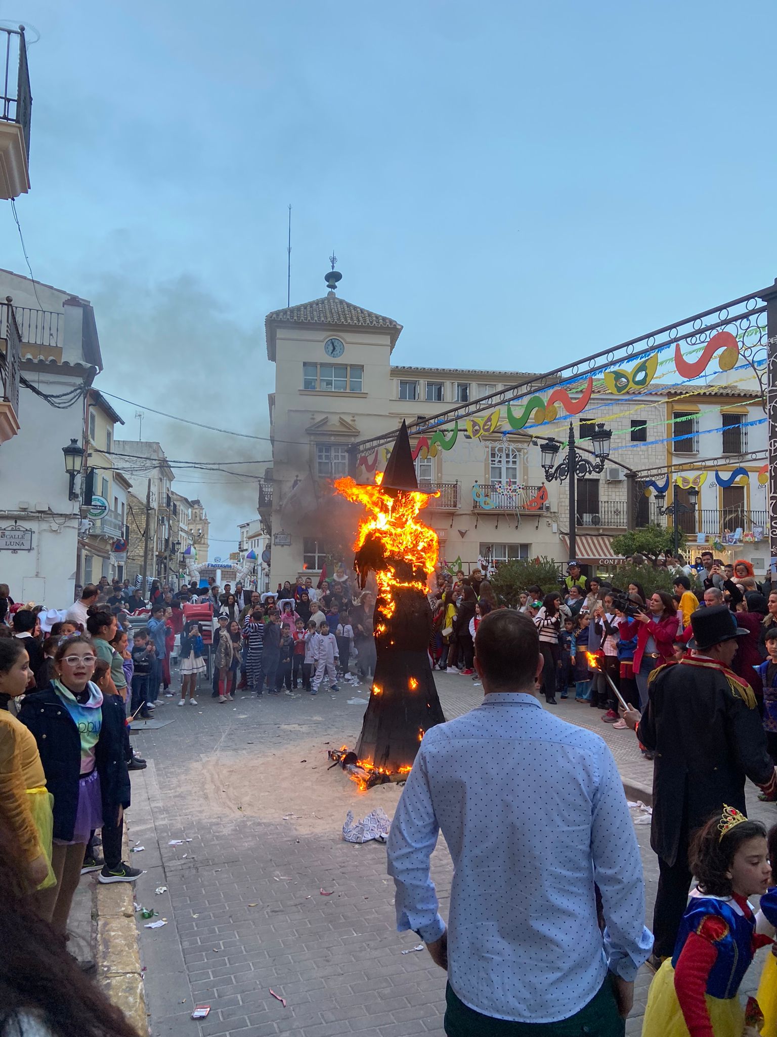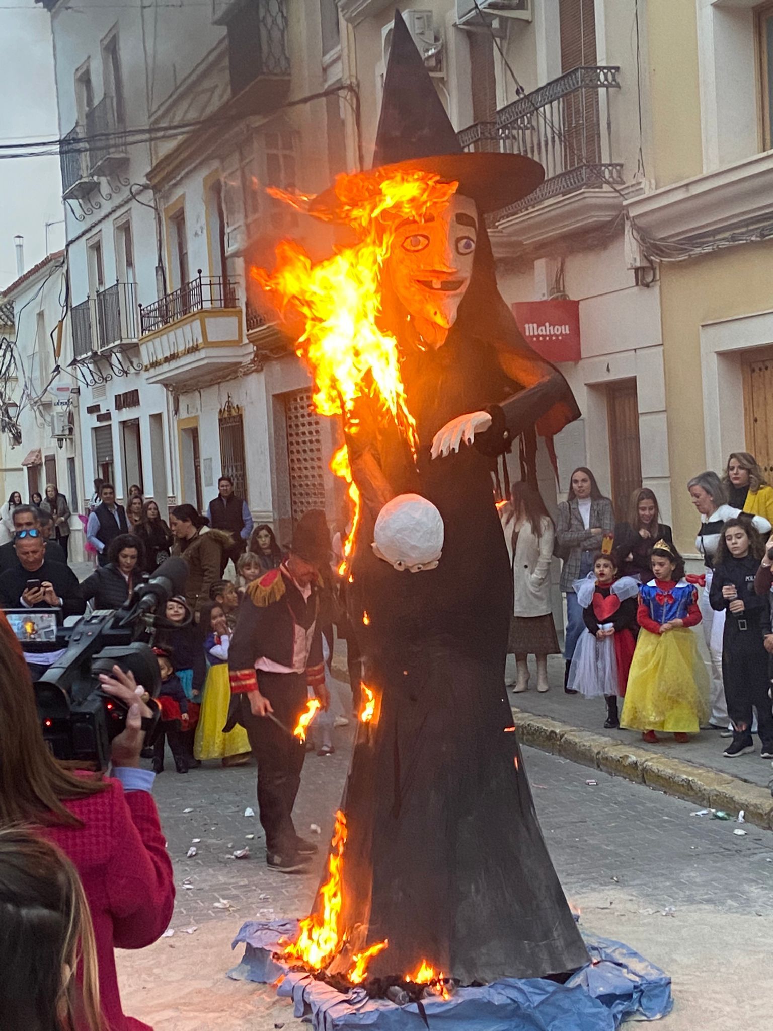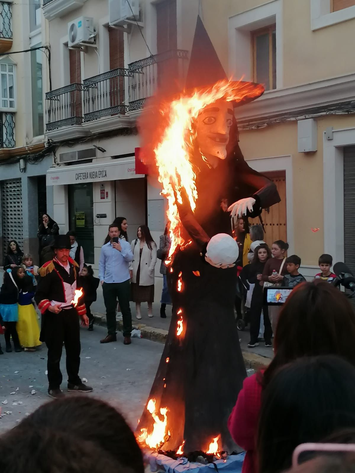 El broche de oro a esta gran jornada carnavalera lo pusieron a partir de las siete de la tarde la tradicional quema de muñecos, durante la que se contó con un malabarista, escupefuego y equilibrista.