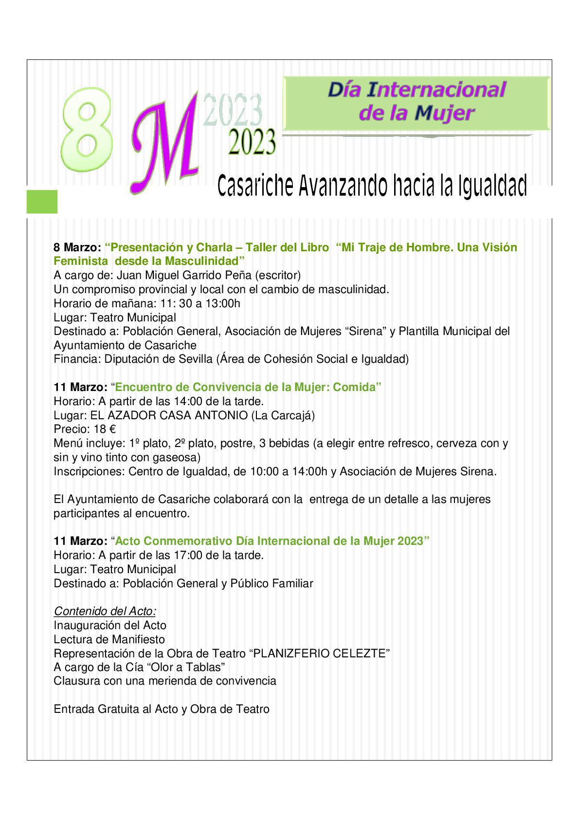 Consultar Programación Día Internacional de la Mujer Casariche 2023