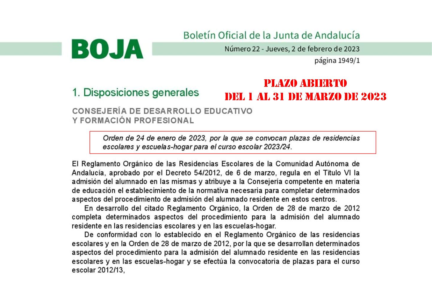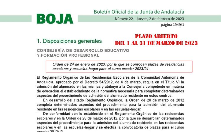 Del 1 al 31 de Marzo estará abierta la convocatoria de plazas en residencias escolares y escuelas-hogar para el curso 2023-2024.