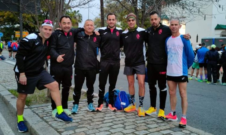 El segundo gran campeonato del mes de Febrero para este club casaricheño ha sido la edición nº 38 de la Maratón de Sevilla, que tuvo lugar el domingo día 19 y que contó con la participación de 8 de sus miembros, Francisco Miguel González González, Jesús Arias Gil, Juan María Moriana Jurado, Javier Marín Muñoz, Esteban Pino Botello, Jesús Escalera Robles, Miguel Ángel España Pérez y José María Adame Leiva, consiguiendo todos ellos llegar a meta.