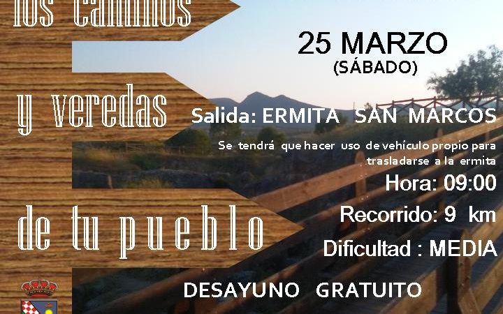 En esta ocasión, la salida será desde la Ermita de San Marcos, por lo que las personas participantes deberán hacer uso de vehículo propio para trasladarse hasta allí. La hora será a las 09:00 h y se ofrecerá un desayuno gratuito al grupo participante.