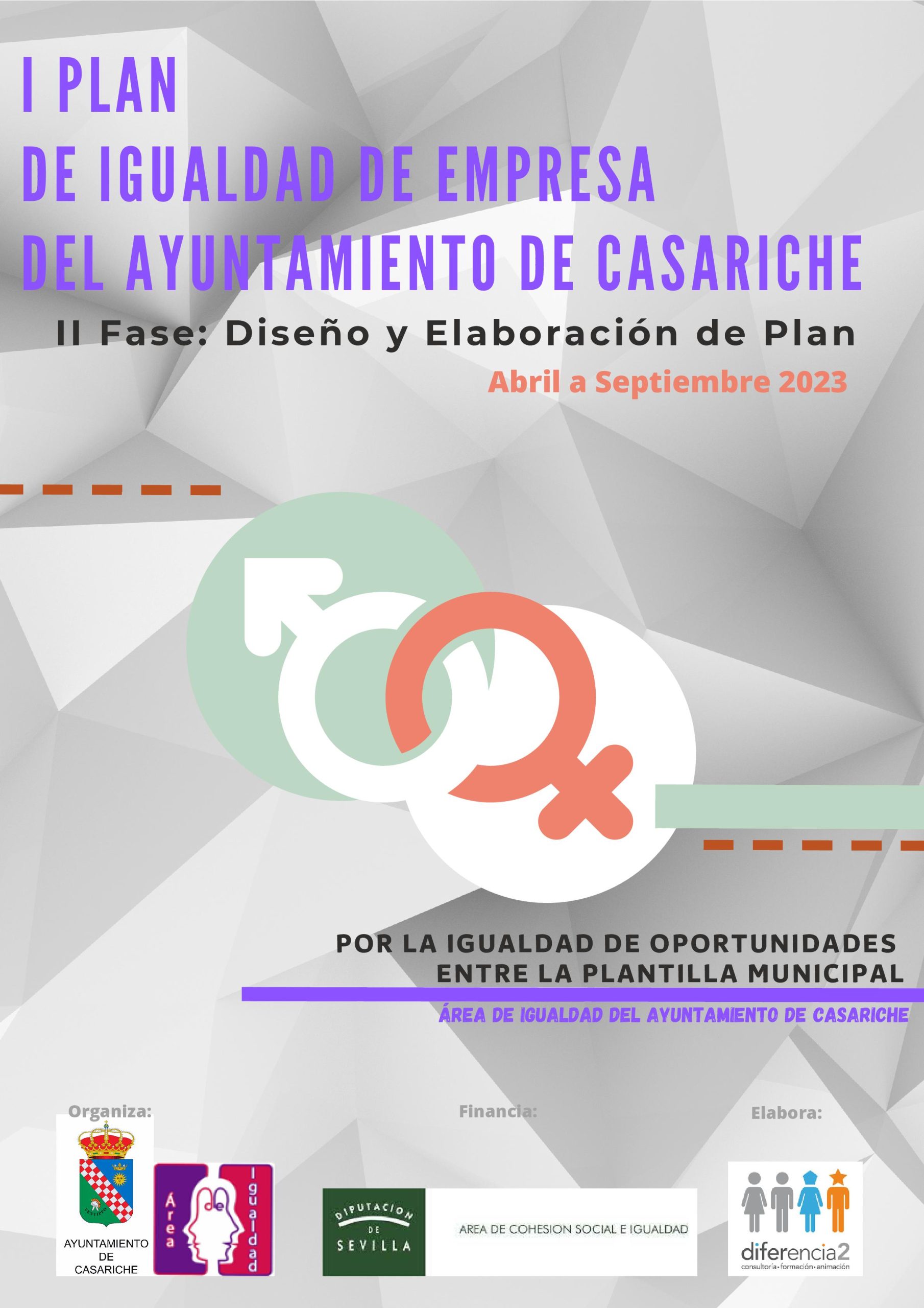En la actualidad, desde Abril a Septiembre de 2023, se está llevando a cabo la II Fase del Plan: DISEÑO Y ELABORACIÓN DEL I PLAN DE IGUALDAD DE EMPRESA del Ayuntamiento de Casariche, partiendo en todo momento de los resultados emanados del Diagnóstico realizado previamente en la primera fase.