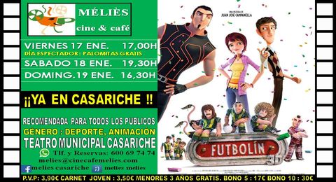 Este fin de semana (del 17 al 19 de Enero) se estrena en Casariche la película de animación «Futbolín», apta para todos los públicos e ideal para ver en familia.