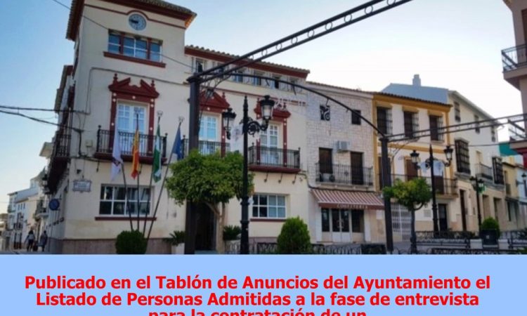 Ya está publicado en el Tablón de Anuncios del Ayuntamiento el Listado de Personas Admitidas a la fase de entrevista en relación al proceso de selección para la contratación laboral excepcional de un peón de decoración de exteriores e interiores.