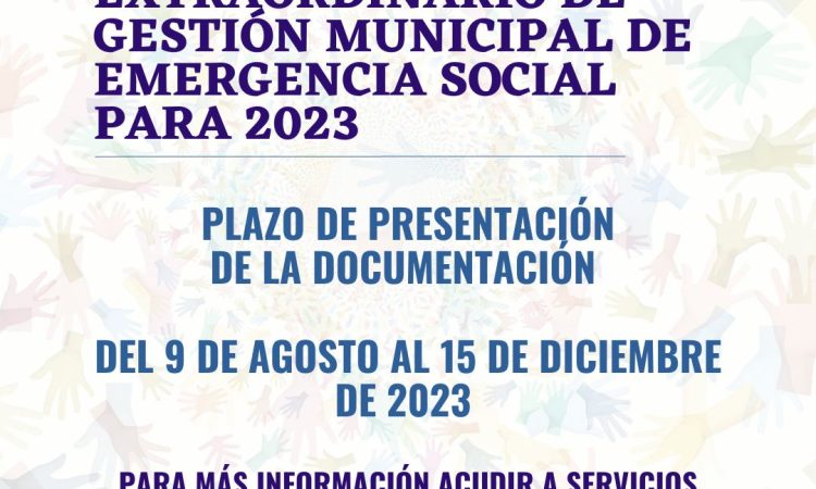 La Delegación de Asuntos Sociales del Ayuntamiento de Casariche informa que ya está abierto el plazo de presentación de solicitudes para optar a ser beneficiario/a del Programa Extraordinario de Gestión Municipal de Emergencia Social de este año 2023, recogido en el Programa de Empleo «Plan Actúa», de la Diputación de Sevilla. El plazo de presentación de solicitudes y documentación estará abierto hasta el 15 de diciembre de 2023, dicho día inclusive.