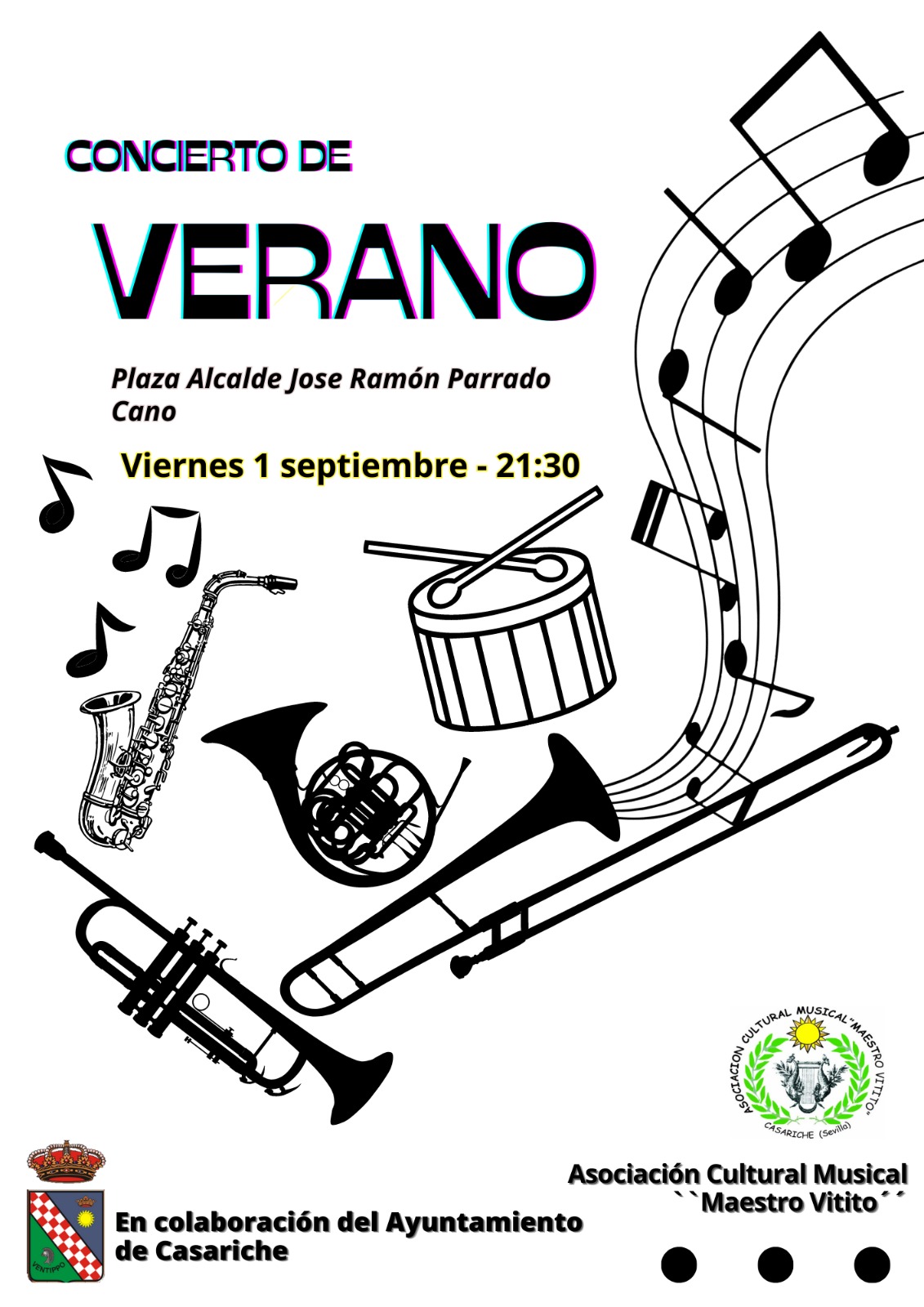 La noche del 1 de septiembre tenemos una cita con la música. Y, es que, como cada año la Asociación Cultural «Maestro Vitito» invita a todos los casaricheños y casaricheñas a disfrutar de una noche mágica gracias a su tradicional concierto de verano.