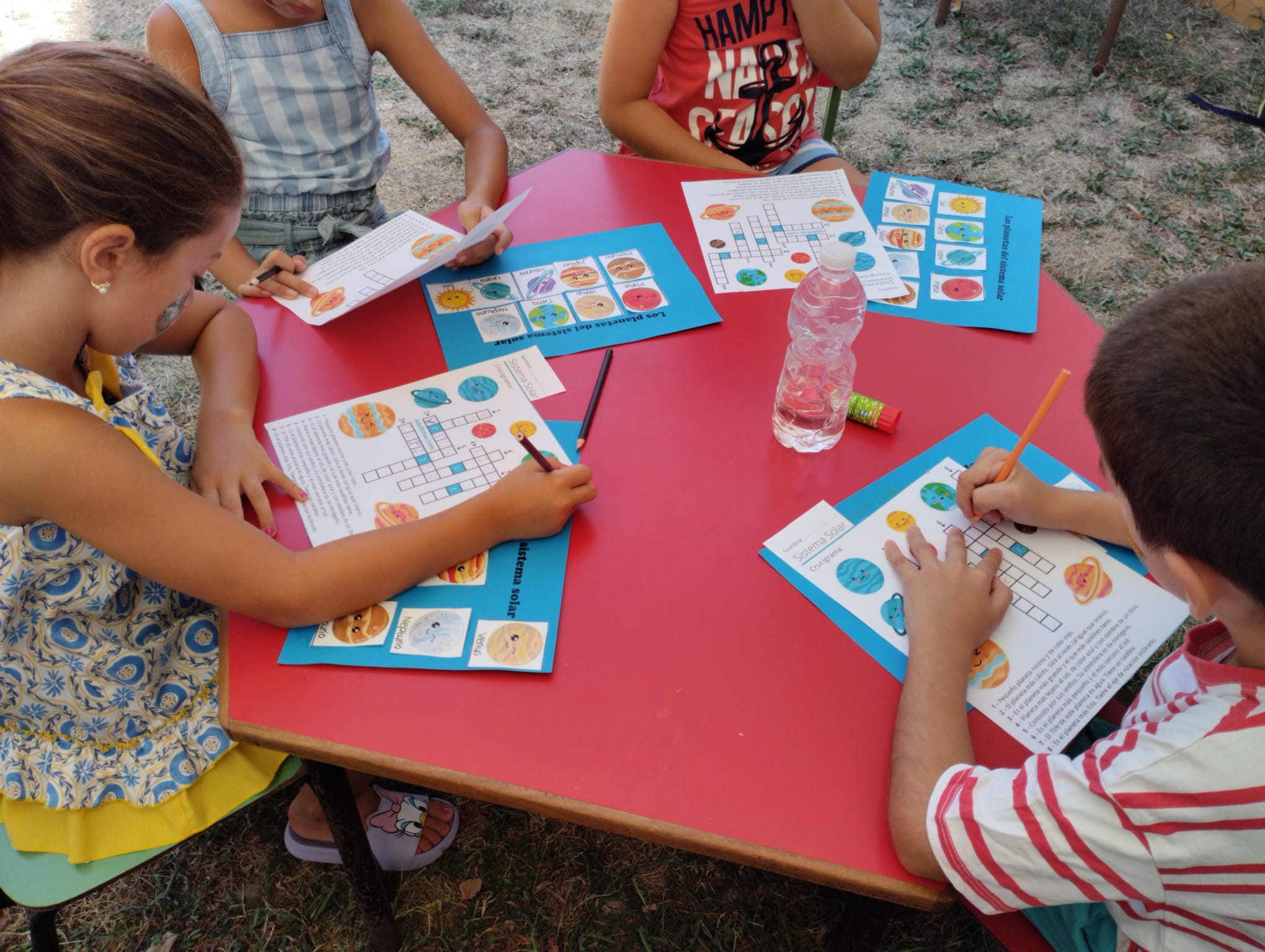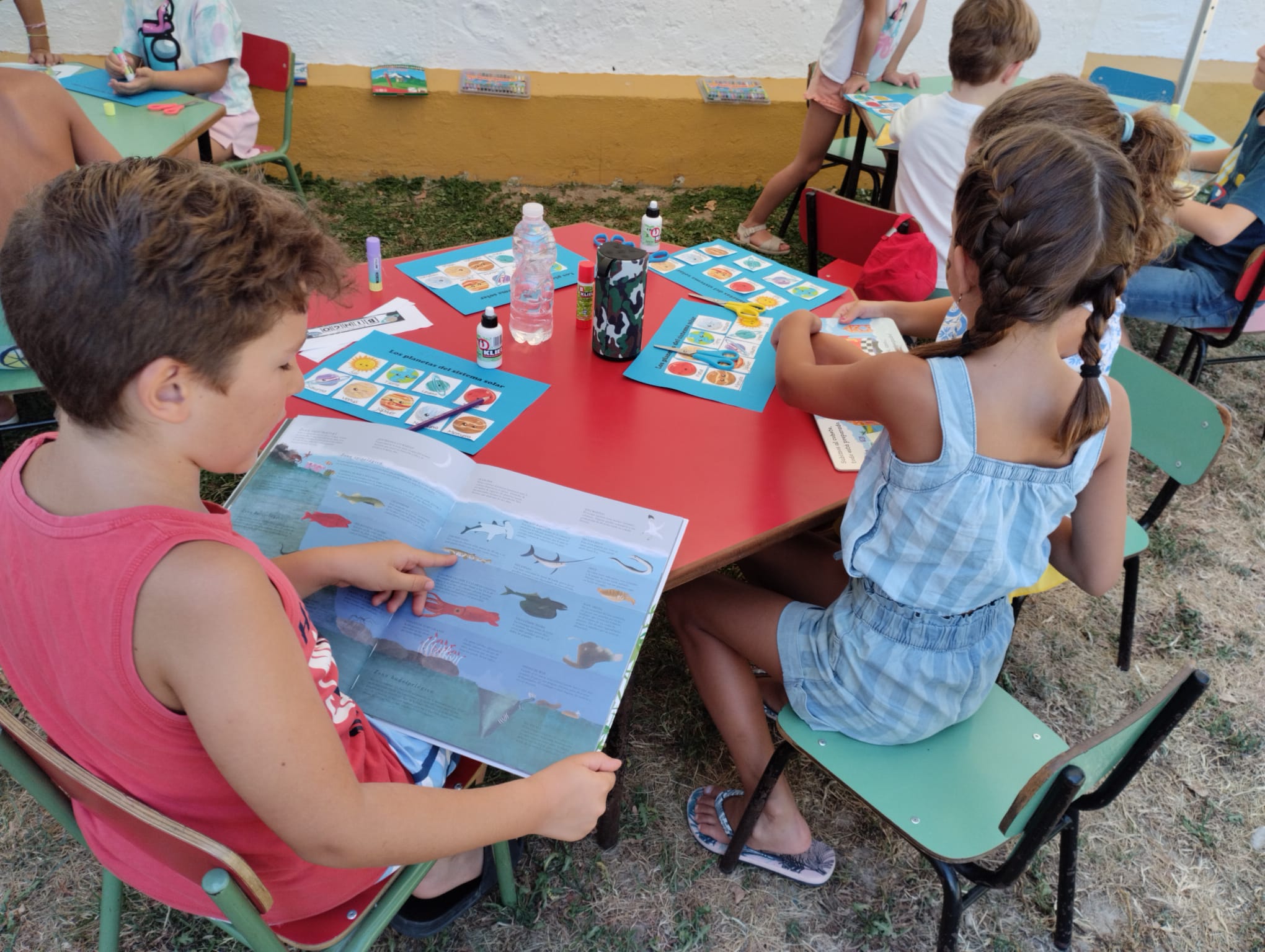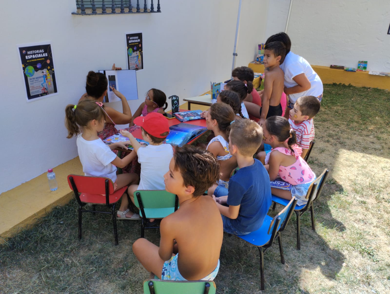Por último, y como broche de oro a una estupenda jornada de bibliopiscina, los niños y niñas también estuvieron realizando otras actividades complementarias a la lectura tales como crucigramas y recortables sobre el espacio, pinta caras y disfrutaron compartiendo un divertido baile conocido como «la estatua».