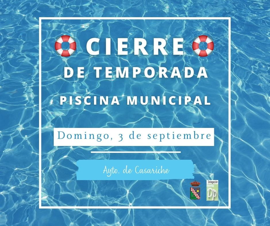 Como cada año, el verano va llegando a su fin y con él toca despedirnos de la temporada de baño en nuestra Piscina Municipal. Por ello, el Ayuntamiento comunica a todos los vecinos y vecinas que el próximo domingo 3 de septiembre será el último día que la piscina permanecerá abierta.