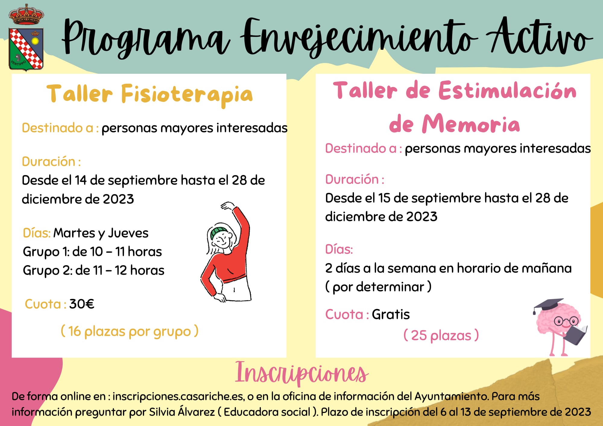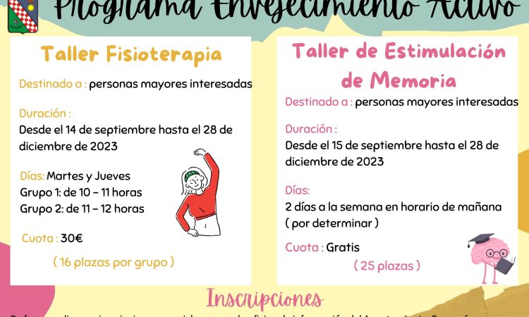 En este 2023, los talleres que se van a llevar a cabo desde este programa son: Taller de Fisioterapia y Taller de Estimulación de Memoria, destinados ambos a personas mayores.
