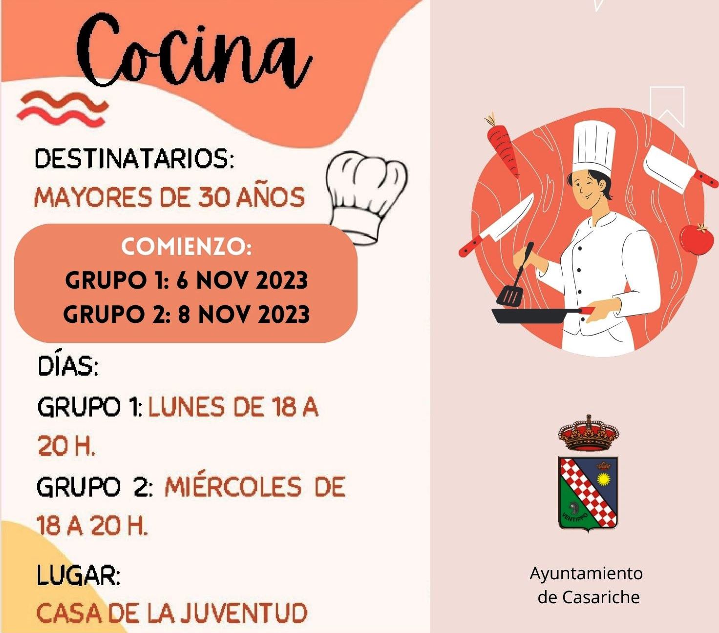 Esta tarde, de 18:00 a 20:00 h, comienza el primer grupo del Taller de Cocina para Adultos y el segundo grupo comenzará el próximo miércoles 8 de noviembre, también en horario de 18:00 a 20:00 h.