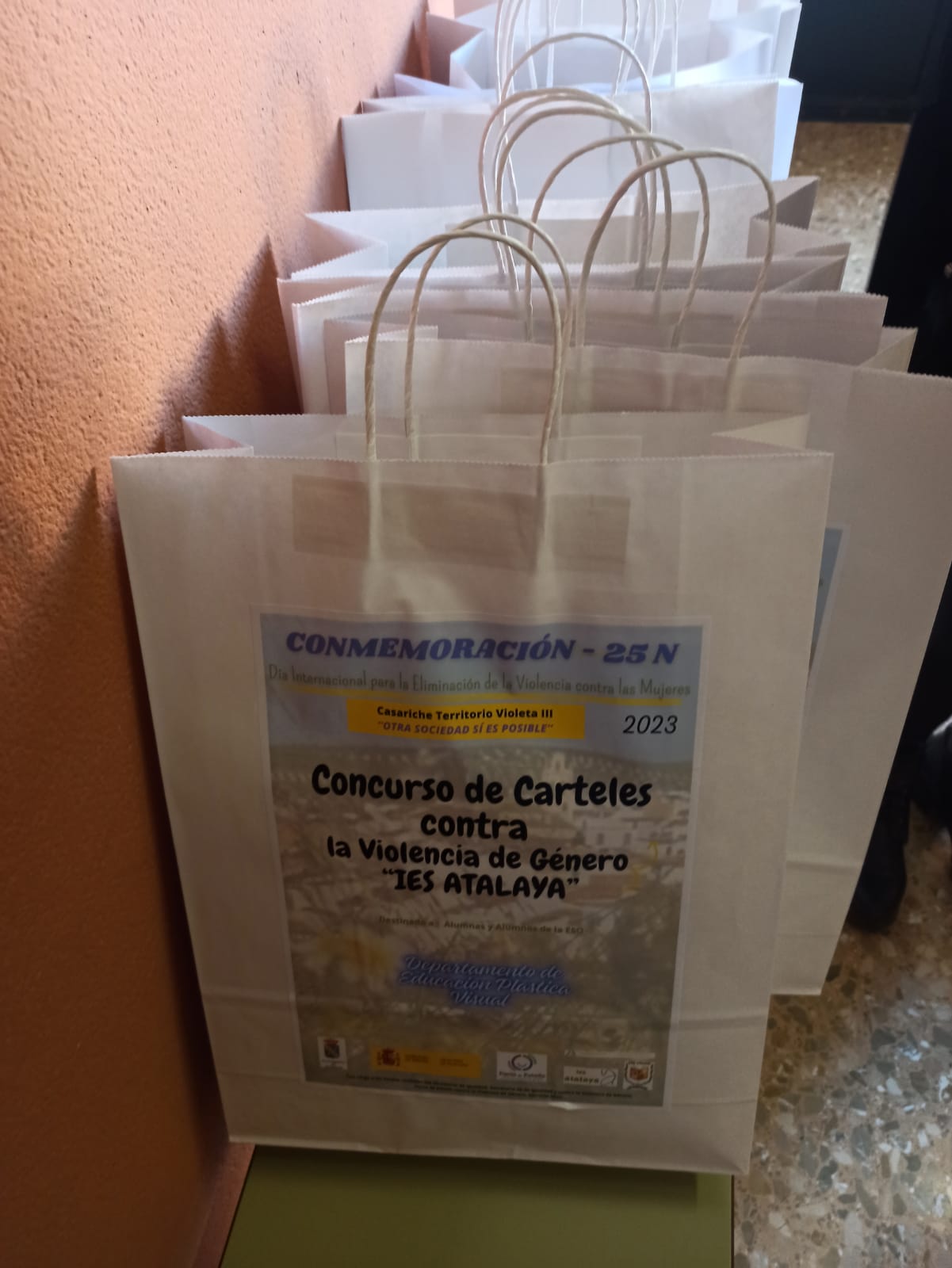 El alumnado ganador del Concurso de Carteles contra la Violencia de Género 25 N IES Atalaya 2023 tiene ya sus premios, que han sido entregados por la Concejala de Igualdad, Sandra Gómez Parrado.