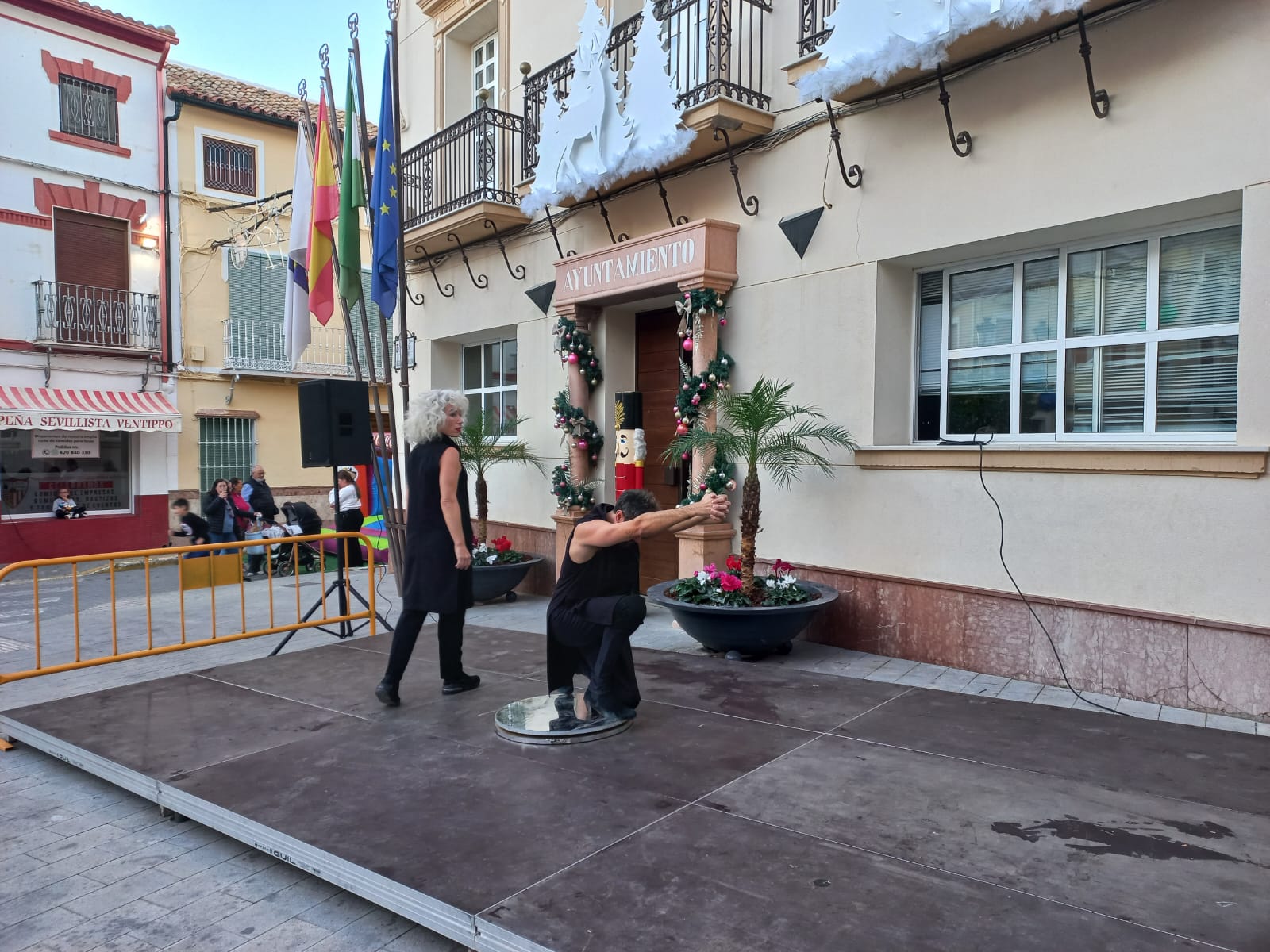 Nuestros niños y niñas lo pasaron en grande en el Taller de decoración navideña a cargo del Centro de Desarrollo Rural Sastipem, que estuvo en funcionamiento de 16:00 a 18:00 h. A las 17:30 h, el espectáculo ‘El Primer Círculo’, a cargo de Gero Domínguez junto a la bailarina Nuria Estébanez, fusionó dos lenguajes corporales como el flamenco y la danza contemporánea, siendo el contacto el nexo entre ellos. Seguidamente, a las 18:30 h, se inauguró el alumbrado navideño y a continuación el grupo Zumba Kids de Casariche amenizó la tarde con sus trabajadas coreografías.