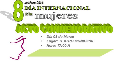 Nuestro Teatro Municipal acoge el sábado 8 de Marzo, a las cinco de la tarde, el Acto Conmemorativo del Día Internacional de las Mujeres, que se iniciará con la Lectura del Manifiesto, e incluirá además la charla “Obligación o derecho a ser madre” impartida por Begoña Gallardo García, Lda.en Ciencias Políticas y Socióloga, la proyección de un video que visualiza el porqué se celebra este día a nivel internacional y la Presentación-Exposición“Mujeres en la Historia de España” a cargo del S.E.P.E.R “Concepción Arenal” de nuestra localidad, con la colaboración de su profesora Natalia Jiménez Chias.
