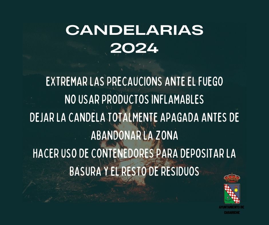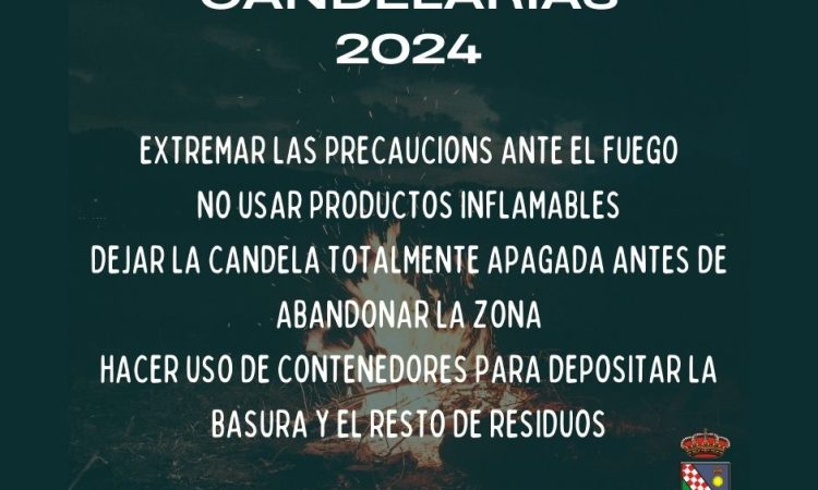 Desde el Ayuntamiento, aprovechamos para hacer un llamamiento a la prudencia y al respeto en todo momento de las áreas delimitadas para la celebración de las candelas, así como rogamos que se extremen las precauciones ante el fuego, no utilizando productos inflamables y dejando la candela totalmente apagada antes de irse a casa.