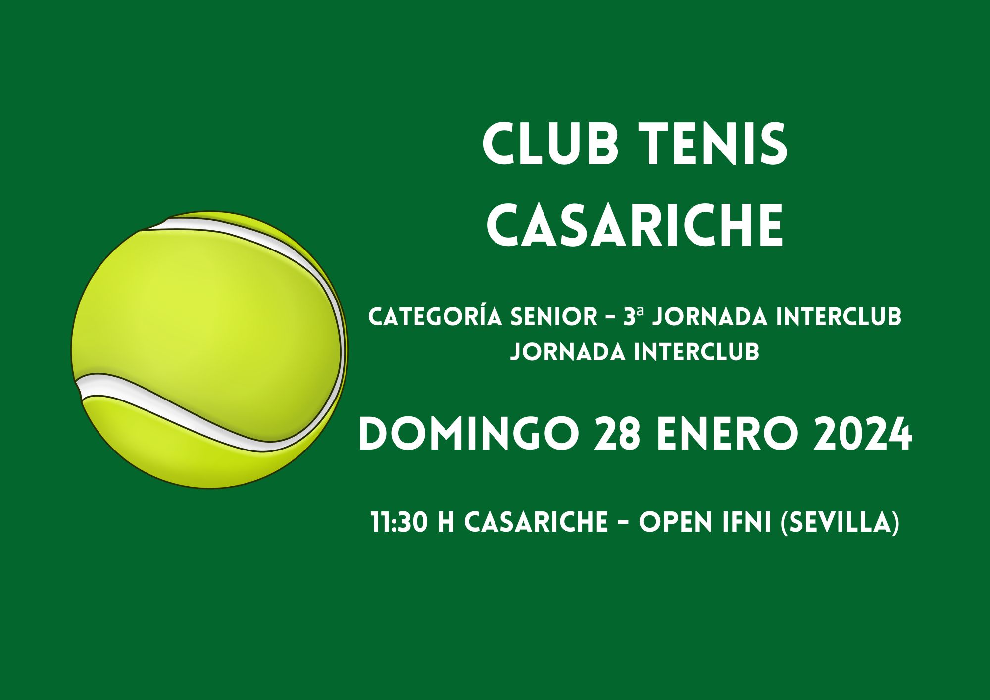 Además, el domingo 28 el Club de Tenis Casariche juega en casa su tercera jornada interclub contra el Open Ifni (Sevilla).