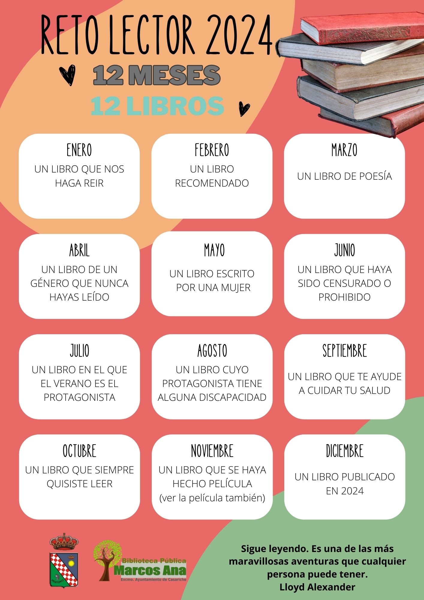 Como cada nuevo año, desde este mes está en marcha en la Biblioteca Municipal ‘Marcos Ana’ el ‘Reto lector 2024’, una iniciativa de fomento a la lectura que consiste en dar cumplimiento a la lectura de 12 libros durante un año, teniendo en cuenta que los libros seleccionados deben cumplir una serie de requisitos.