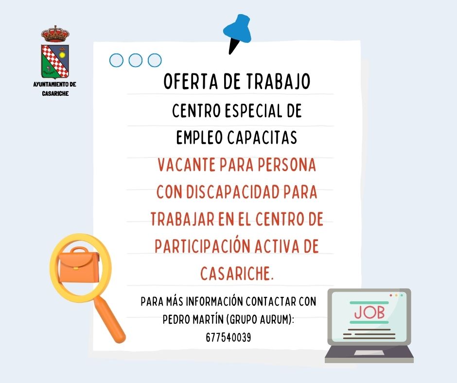 Informamos que desde el Centro Especial de Empleo Capacitas, servicios integrales S.L. se encuentran inmersos en la búsqueda de personal de limpieza con discapacidad igual o superior a 33%.