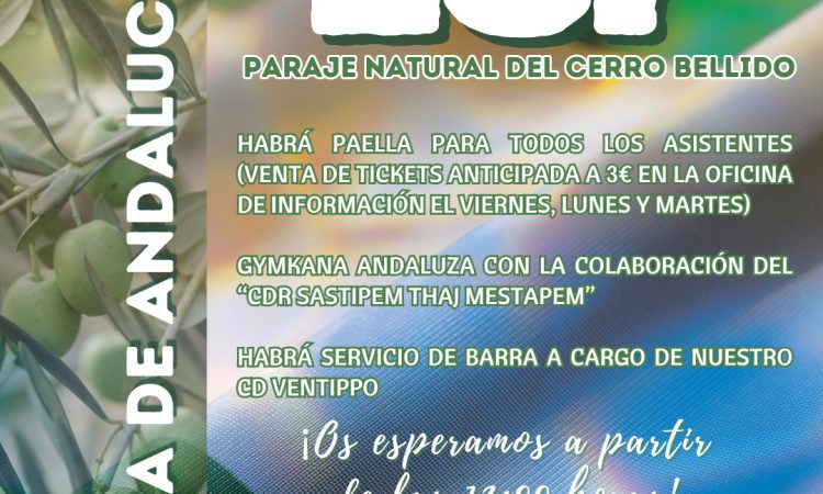 ¡Qué mejor alternativa que celebrar el día de todos los andaluces y andaluzas con una jornada de convivencia en un paraje de belleza incomparable como es nuestro Cerro Bellido, que alberga además una parte de nuestro patrimonio histórico!