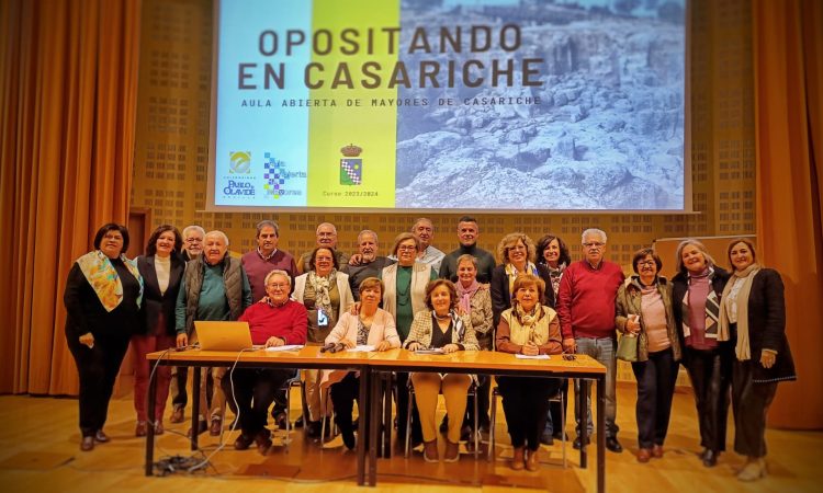 Para la ocasión, el grupo casaricheño se desplazó al Paraninfo de la UPO, donde por la mañana se fueron desarrollando las exposiciones de varias Aulas de Mayores de la provincia. En concreto, el alumnado de nuestra localidad expuso su proyecto ‘Opositando en Casariche’, con el cual fue simulando la participación de un grupo candidatos y candidatas a unas oposiciones a Técnico de Turismo en nuestra localidad para abordar temas sobre nuestro patrimonio y nuestra historia, como el origen del nombre de Casariche, nuestro mosaico ‘El Juicio de Paris’ o nuestras fiestas y tradiciones.