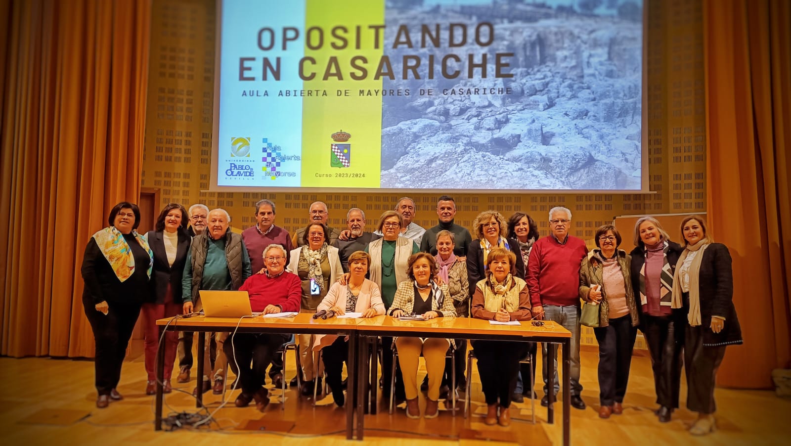 El alumnado del Aula Abierta de Mayores de la Universidad Pablo Olavide de Casariche participó ayer jueves 14 de marzo en las XI Jornadas Culturales de la UPO, que bajo el lema “Hitos y orígenes de nuestros municipios”, han reunido del 11 al 14 de marzo a más de 600 estudiantes del Aula Abierta de Mayores de sus distintas sedes municipales.