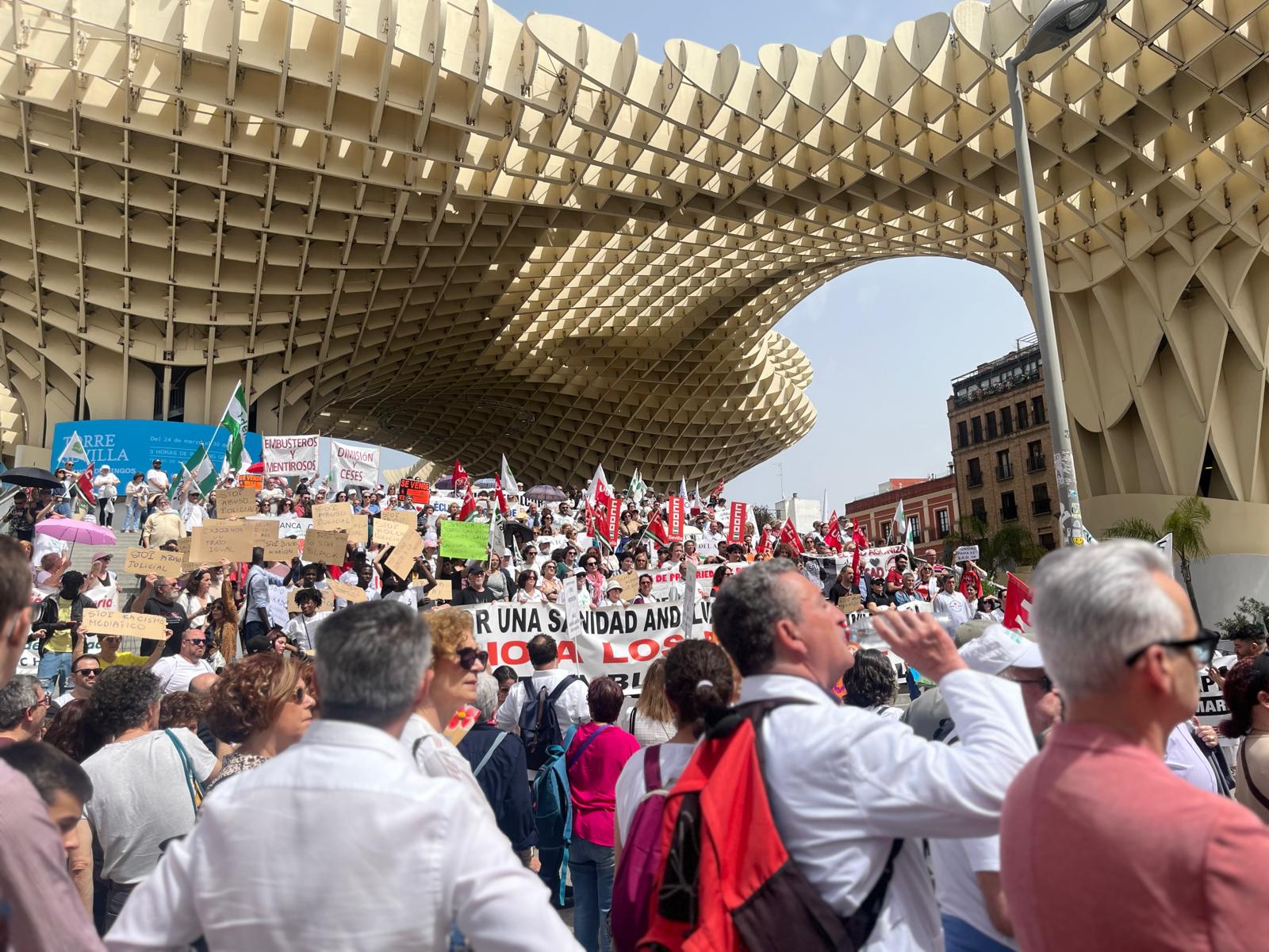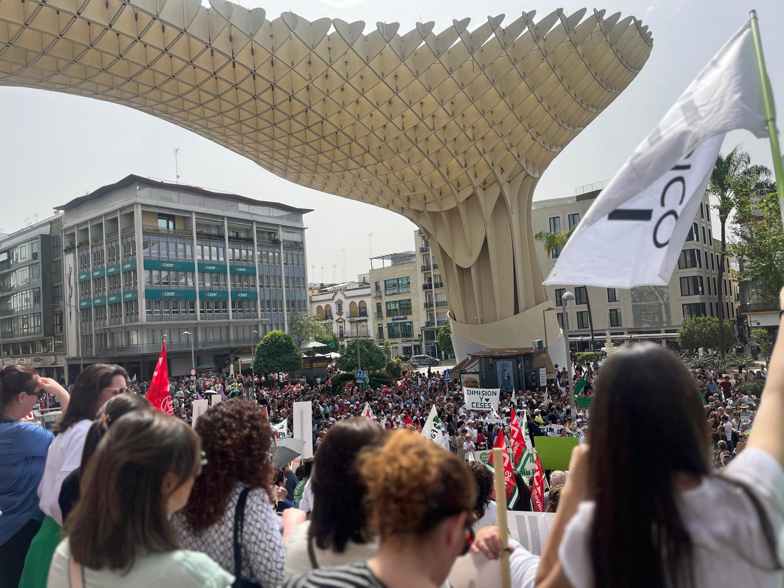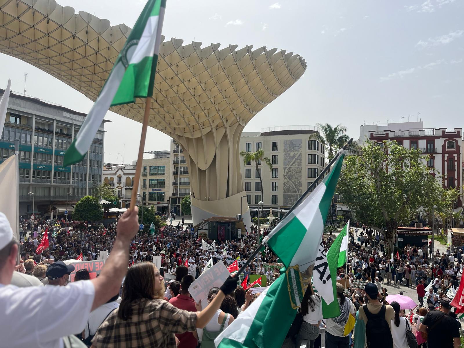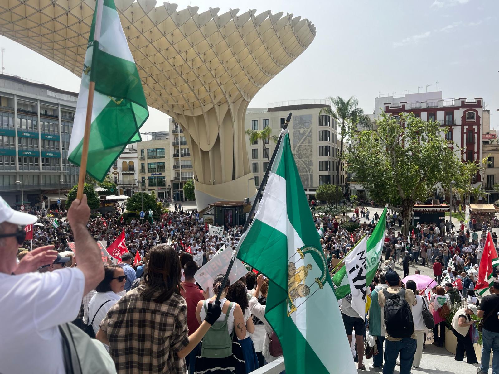 La protesta de Sevilla, que según datos facilitados por la policía, fue una de las más numerosas reuniendo entre 2.000 y 2.500 personas, partió desde el centro de la capital hispalense y concluyó en Las Setas.