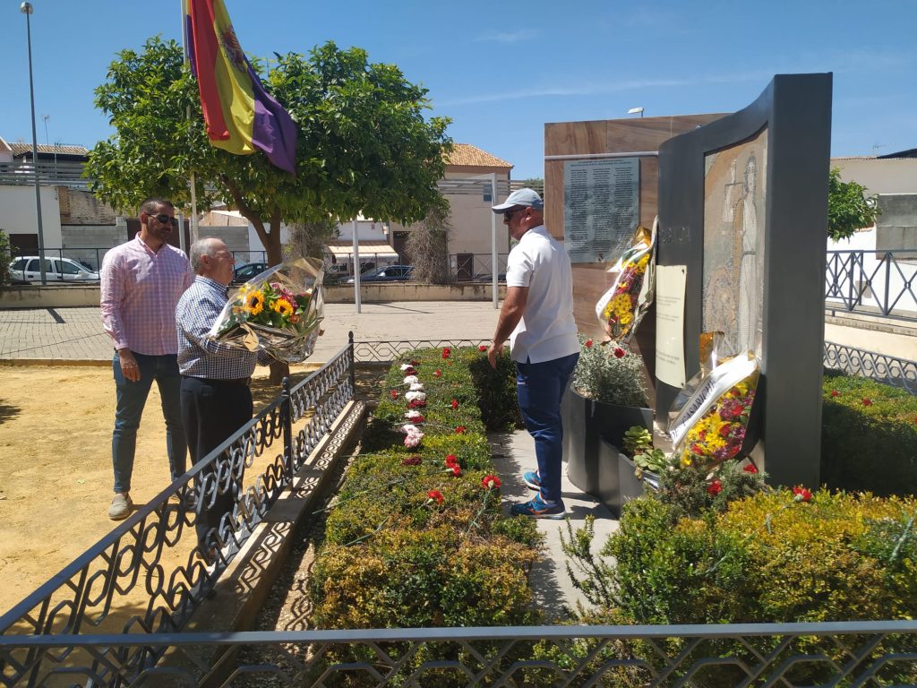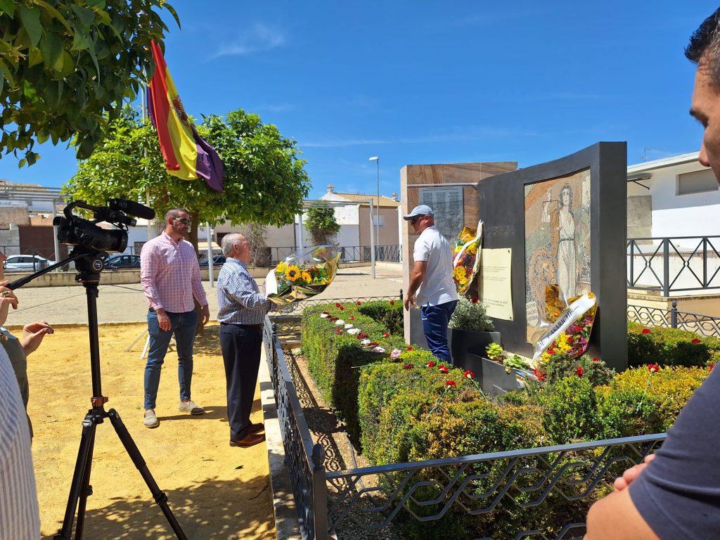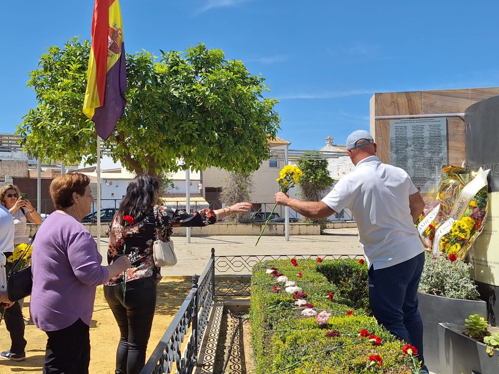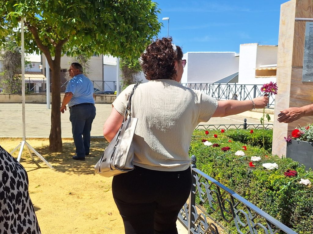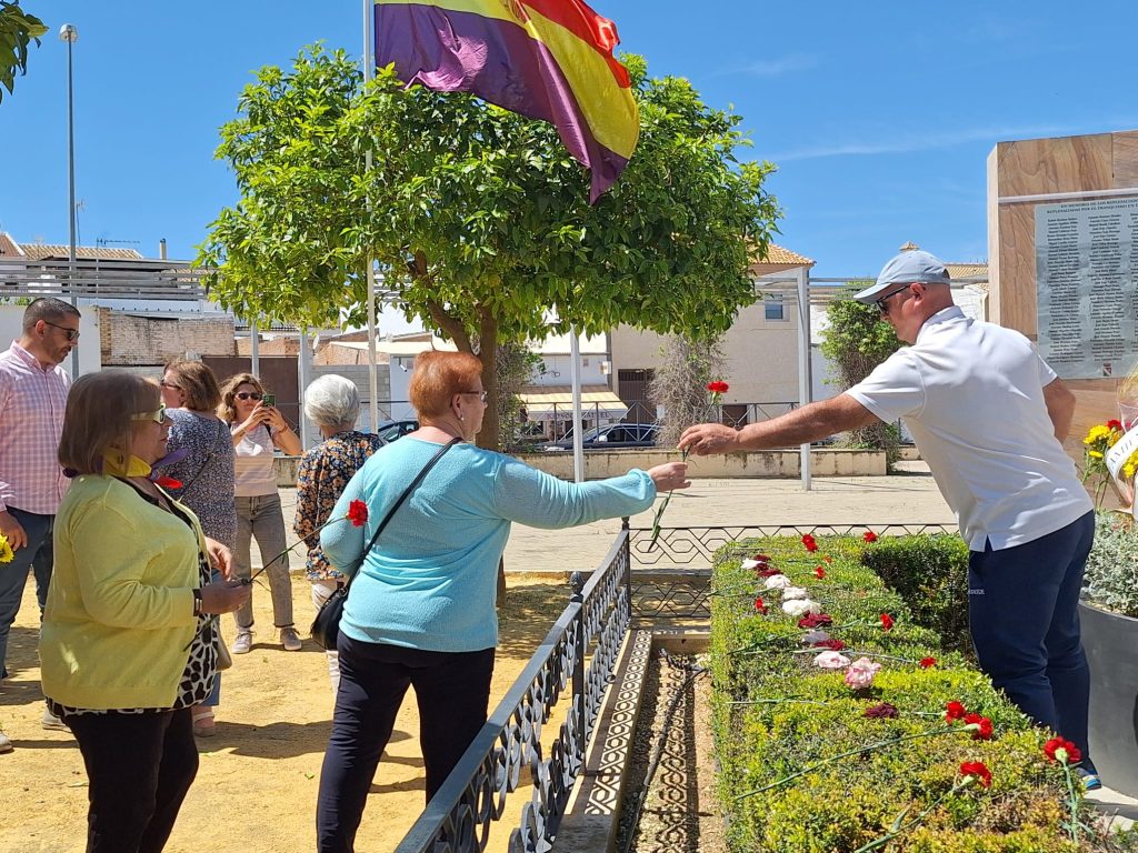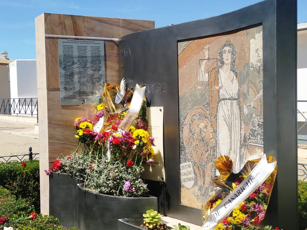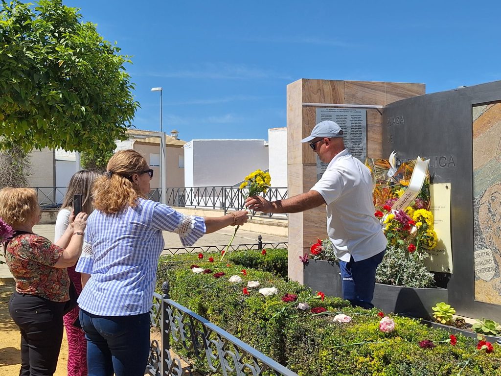 Seguidamente, los actos continuaron en la Plaza de la República, donde se llevó a cabo el descubrimiento de una placa en memoria de los/as represaliados/as por el franquismo en Casariche, a cargo de nuestro Alcalde, el Concejal de Cultura y ex-alcalde Francisco Moriana, quienes iniciaron a continuación una ofrenda floral, en la que después fueron participando los numerosos vecinos y vecinas allí presentes.