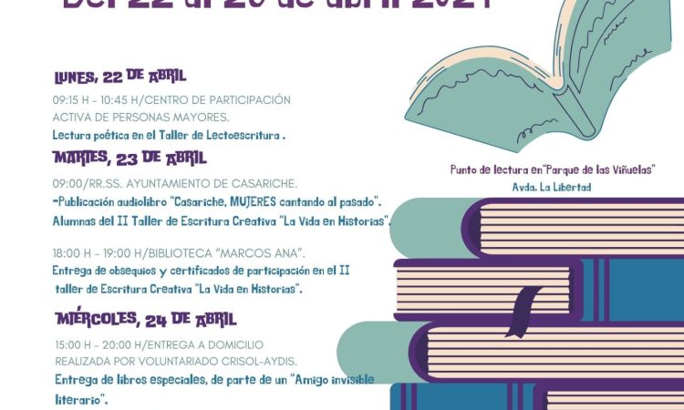 Ésta actividad se enmarca en la programación de actividades conmemorativas del Día del Libro 2024 y para apuntarse hay que realizar una inscripción previa a través del Portal Municipal de Inscripciones: https://inscripciones.casariche.es/ o en la Oficina de Información del Ayuntamiento.