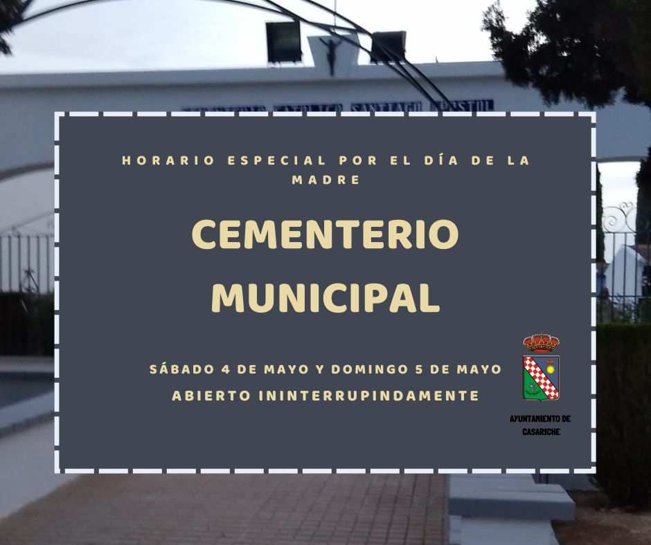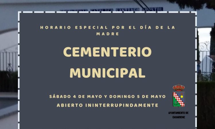El Cementerio Municipal tendrá un horario especial este fin de semana con motivo de la conmemoración del Día de la Madre, por lo que abrirá de forma ininterrumpida los días 4 y 5 de mayo.