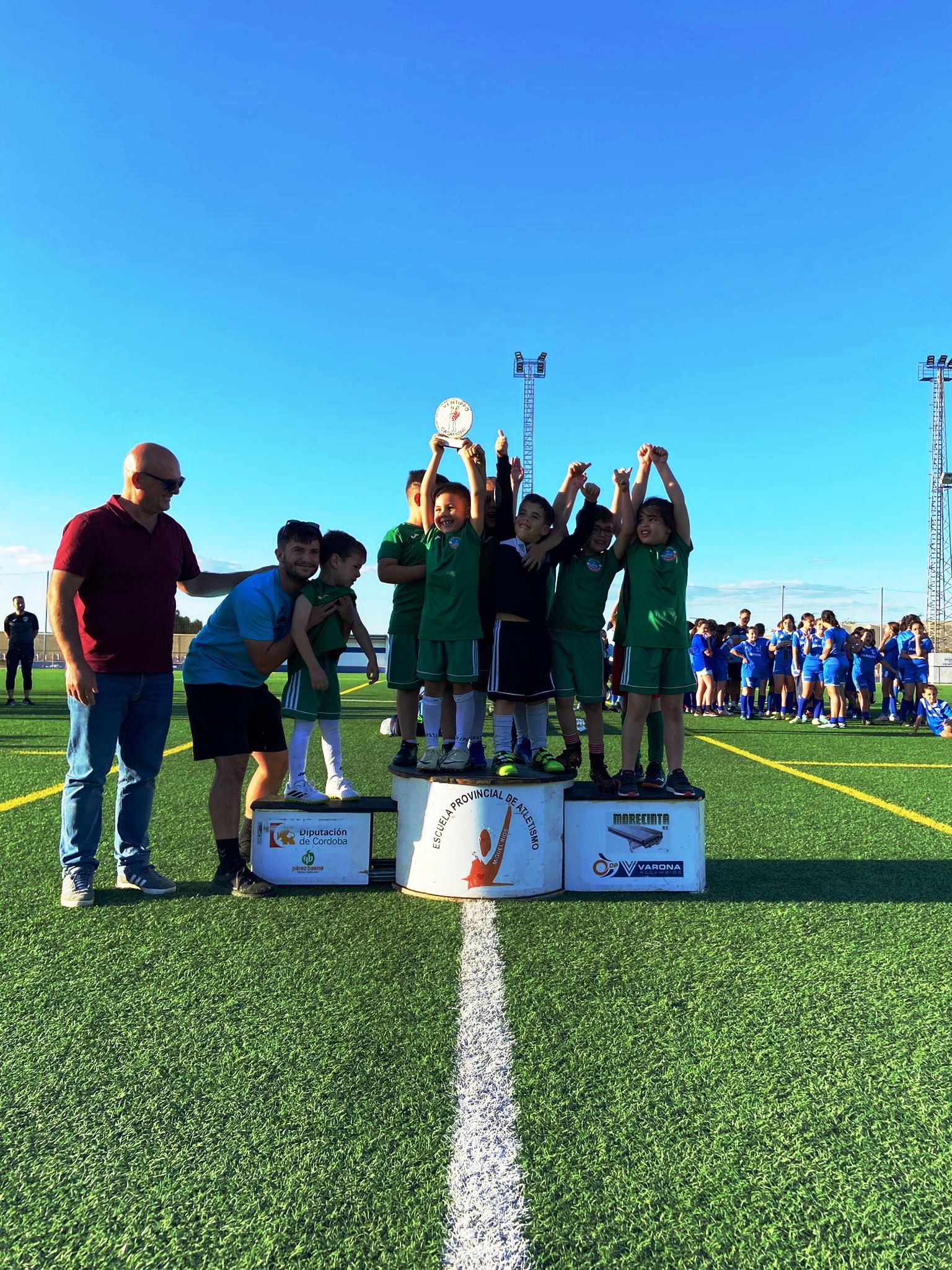 Los equipos prebenjamín y alevín de la escuela de fútbol de Casariche se han proclamado campeones en sus categorías del Torneo Escuelas de Fútbol ‘Ciudad de Ventippo’, celebrado en la tarde de ayer miércoles en el Polideportivo Municipal Sergio Carnerero Gil, en el que participaron las categorías prebenjamín, benjamín, alevín y fútbol femenino de Marinaleda, Martín de la Jara, Badolatosa, Estepa y Casariche. En general, todos nuestros equipos hicieron un buen papel durante esta competición, ya que todas las categorías están presentes en el Cuadro de Honor del Torneo, dado que nuestros benjamines fueron subcampeones, y el equipo de fútbol femenino, que participó con dos equipos, se proclamó tercero y cuarto.