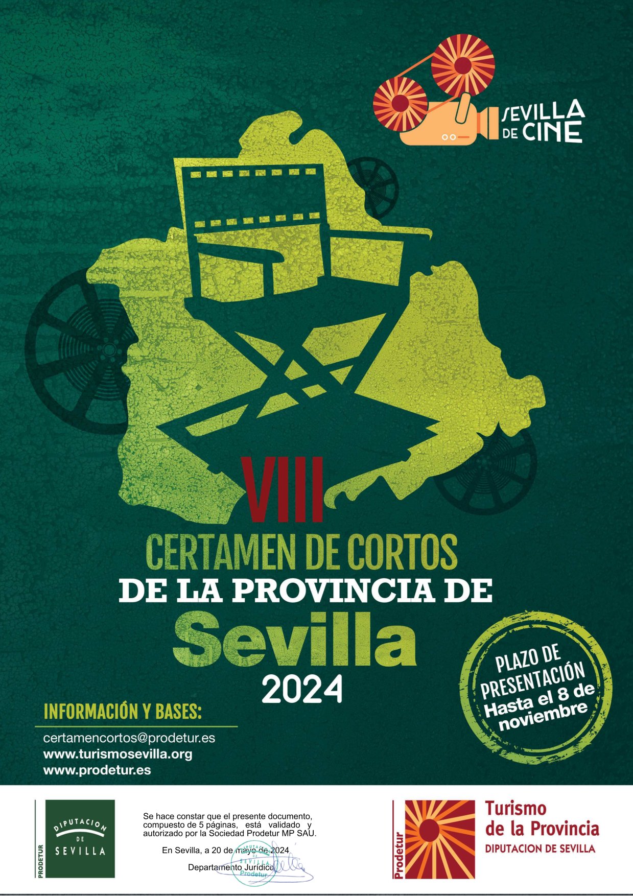 Informamos que está en marcha la VIII edición del “Certamen de Cortos de la Provincia de Sevilla” 2024, que organiza la Diputación de Sevilla a través de Prodetur.