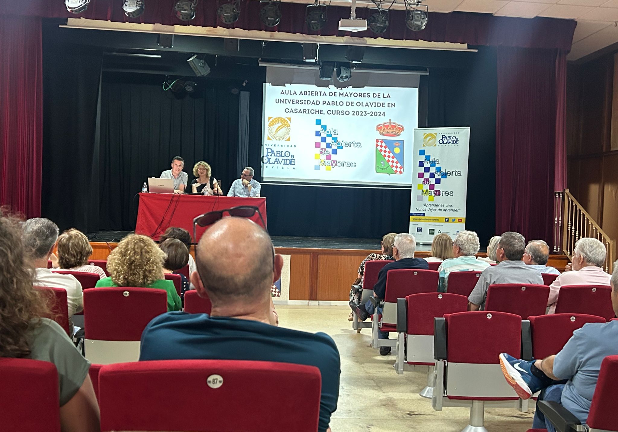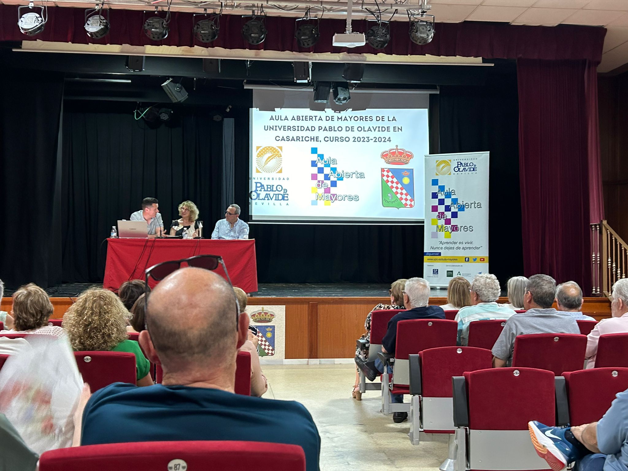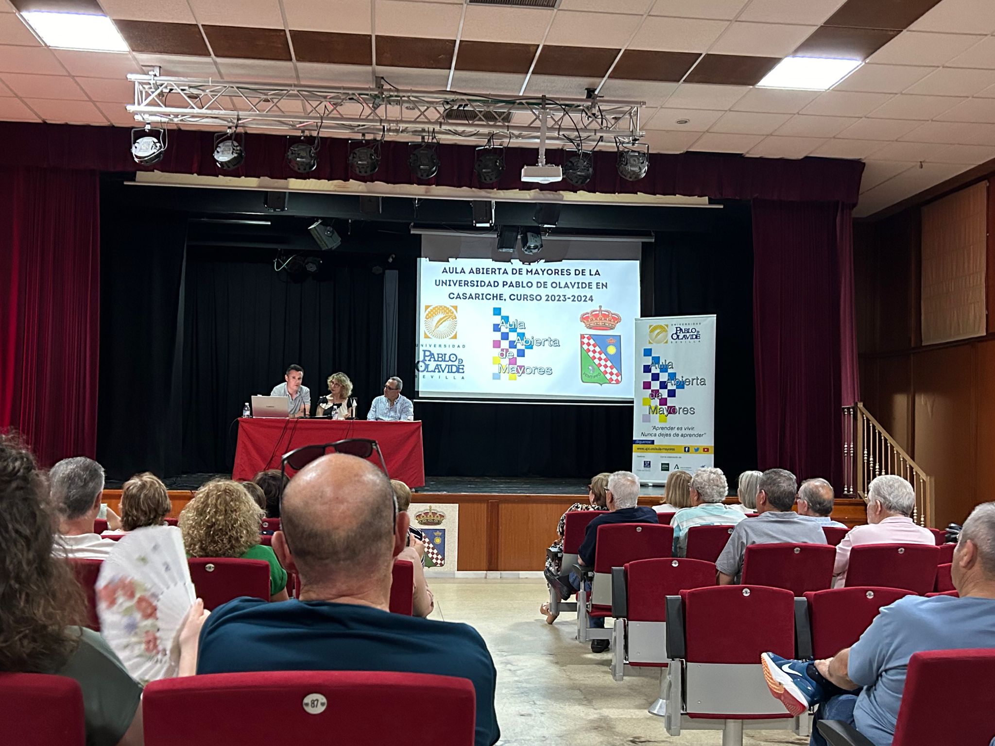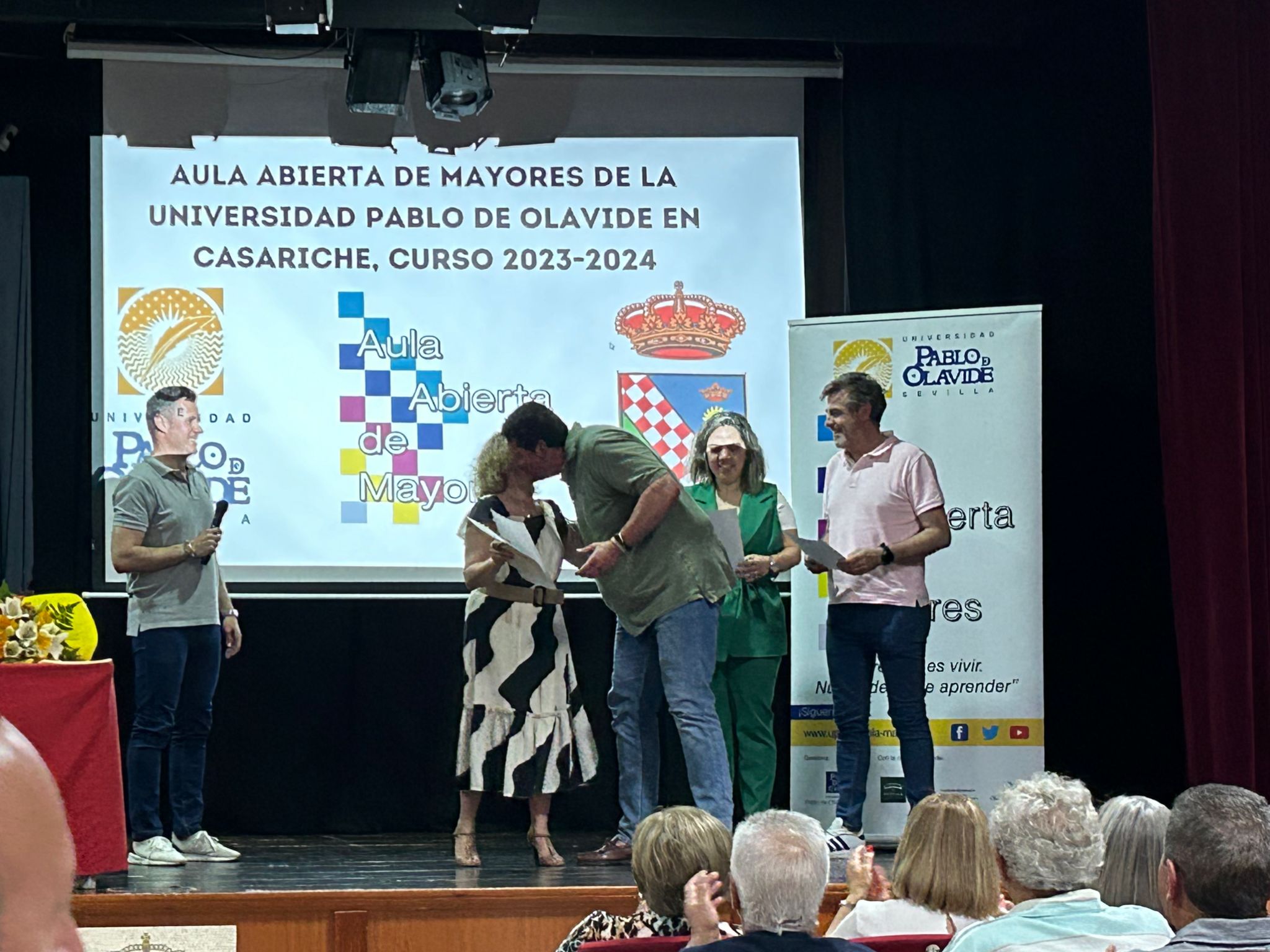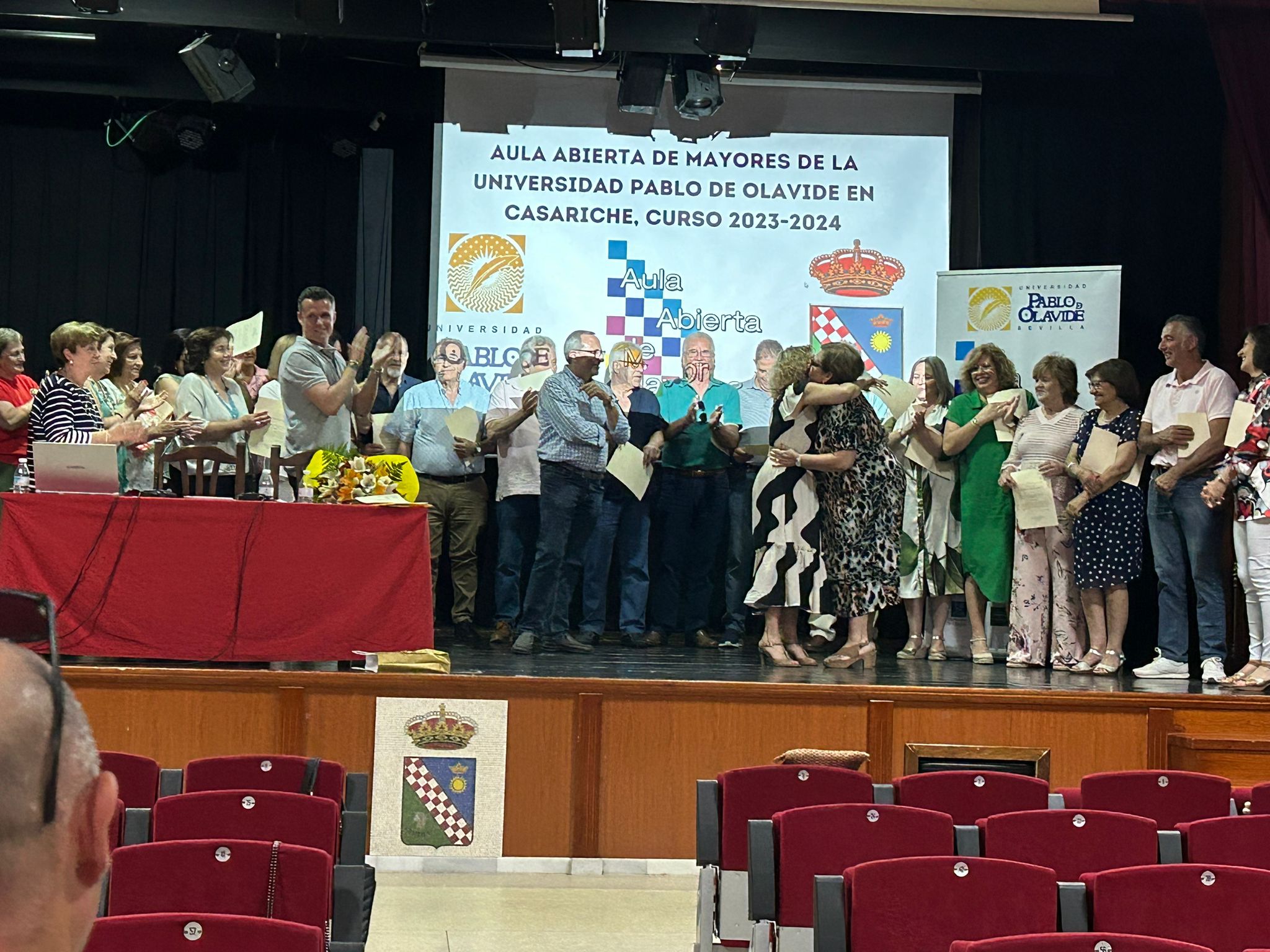 Nuestro Teatro Municipal acogió ayer martes el acto de clausura del curso escolar 2023/2024 del Aula Abierta de Mayores de la Universidad Pablo Olavide (UPO) de Casariche, que fue conducido por la Directora Académica del Aula Abierta de Mayores, Dª. Rocío Cruz, y el Coordinador local de este programa, Javier Quesada, y contó también con la asistencia de la Concejala Blanca Moriana.