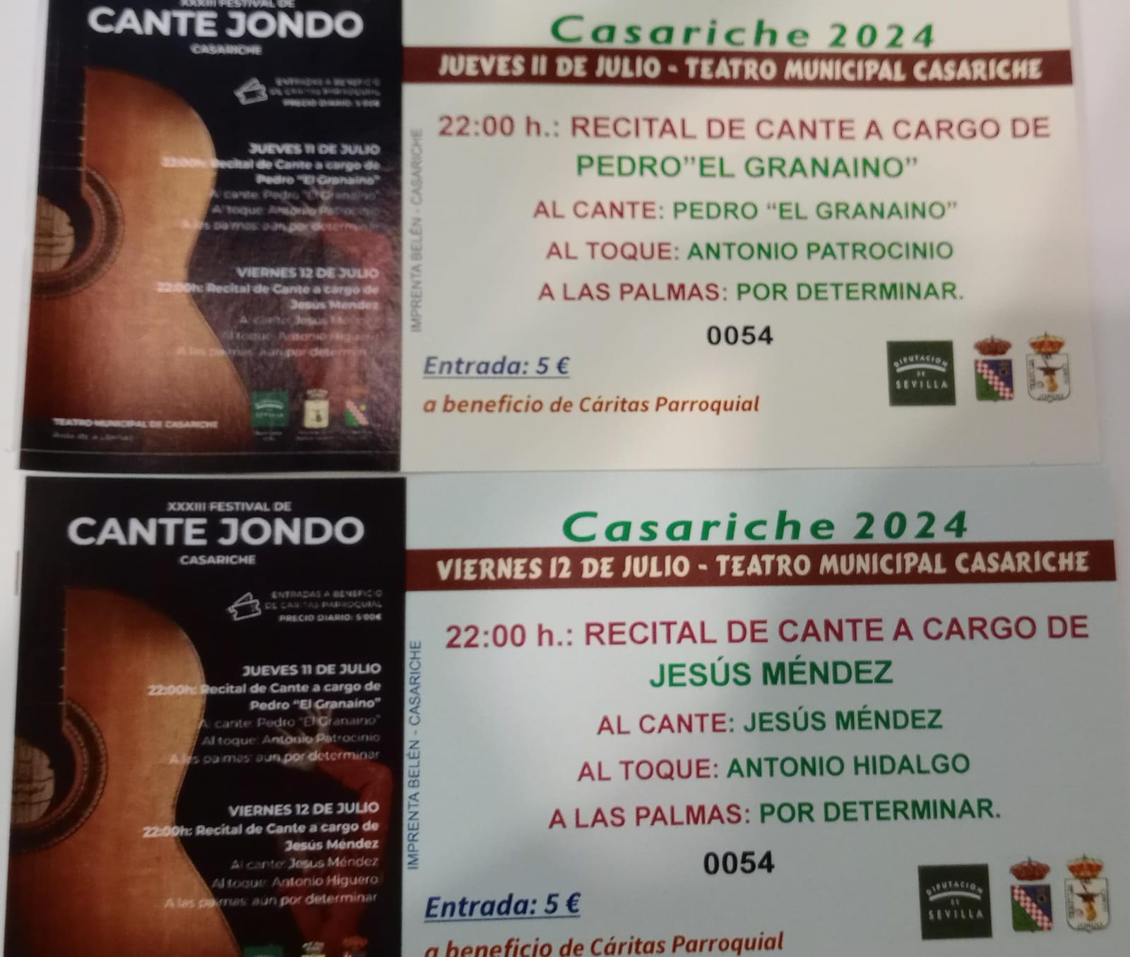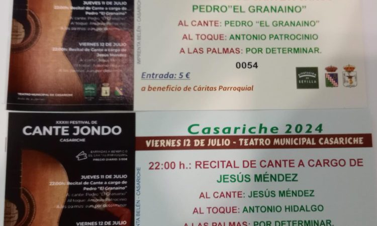 Las entradas tanto para el XXXIII Festival de Cante Jondo de Casariche como para el I Festival de la Guitarra Casaricheña están ya a la venta de forma anticipada.