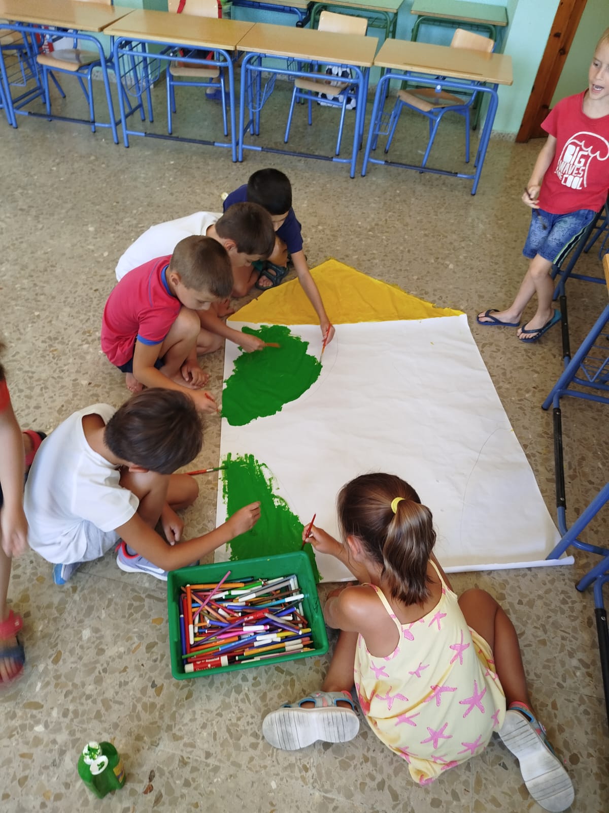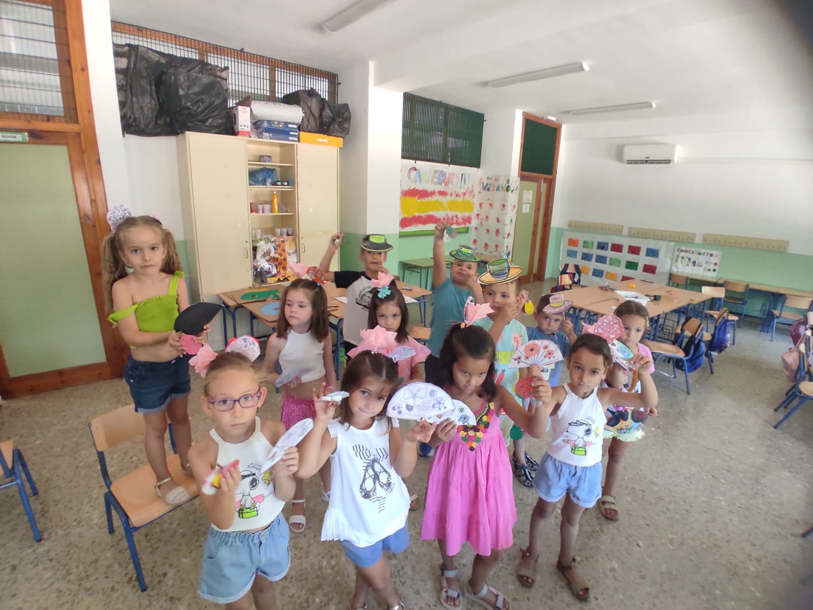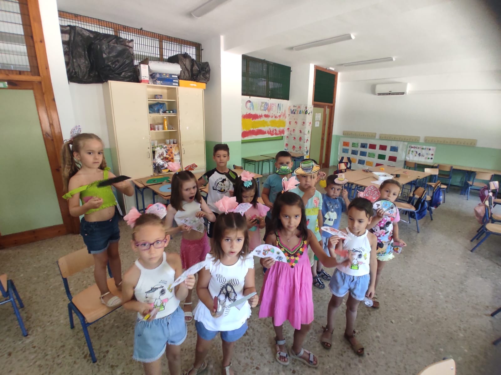En esta última semana, el alumnado del Campamento de Verano ha participado en distintas actividades relacionadas con nuestra Feria. Entre ellas han asistido a una masterclass de baile, han diseñado objetos decorativos de casetas y han realizado un mural en el que han querido plasmar cómo era la feria de sus abuelos y abuelas.