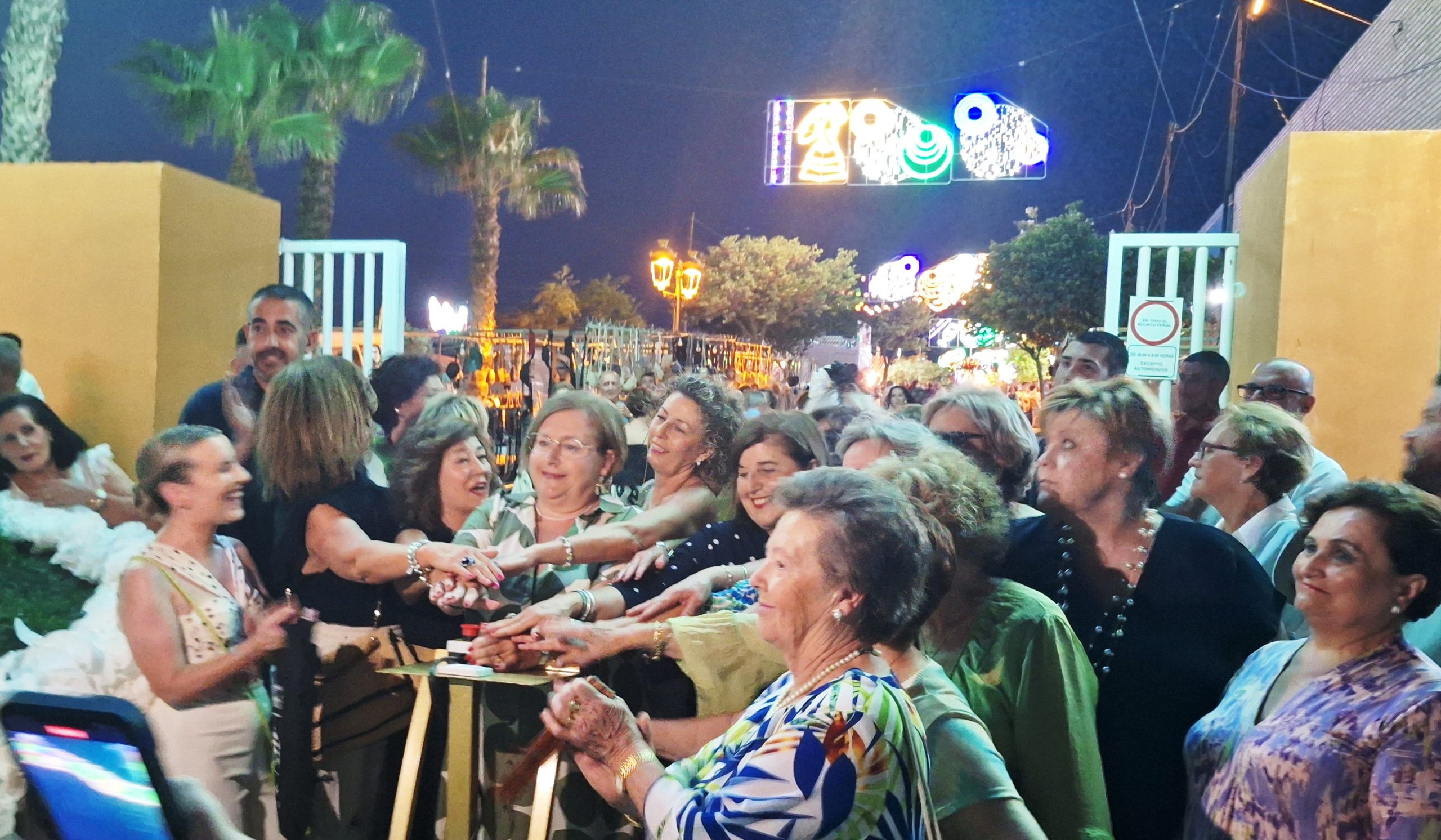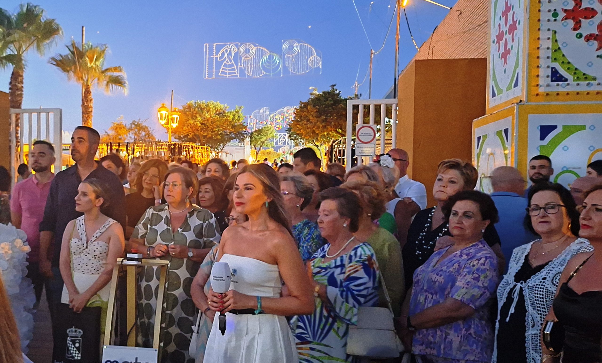 Antonia Parrado, presidenta de la Asociación de Mujeres ‘Sirena’ de nuestra localidad, junto a una representación de socias de dicha asociación que en 2024 se encuentra celebrando el 30 aniversario de su fundación, fue ayer 24 de julio la encargada de encender el alumbrado de nuestra Feria de Santiago.