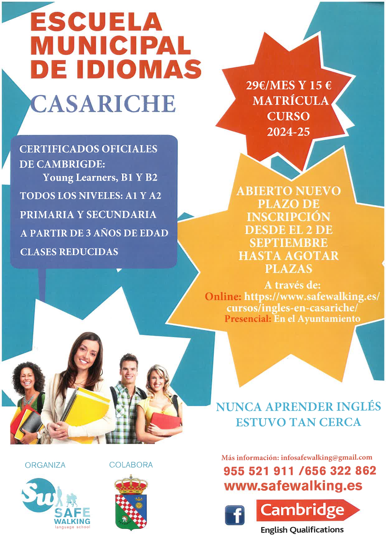 Informamos que la Escuela Municipal de Idiomas «Safe Walking» ha habilitado un nuevo plazo de inscripción hasta agotar plazas.