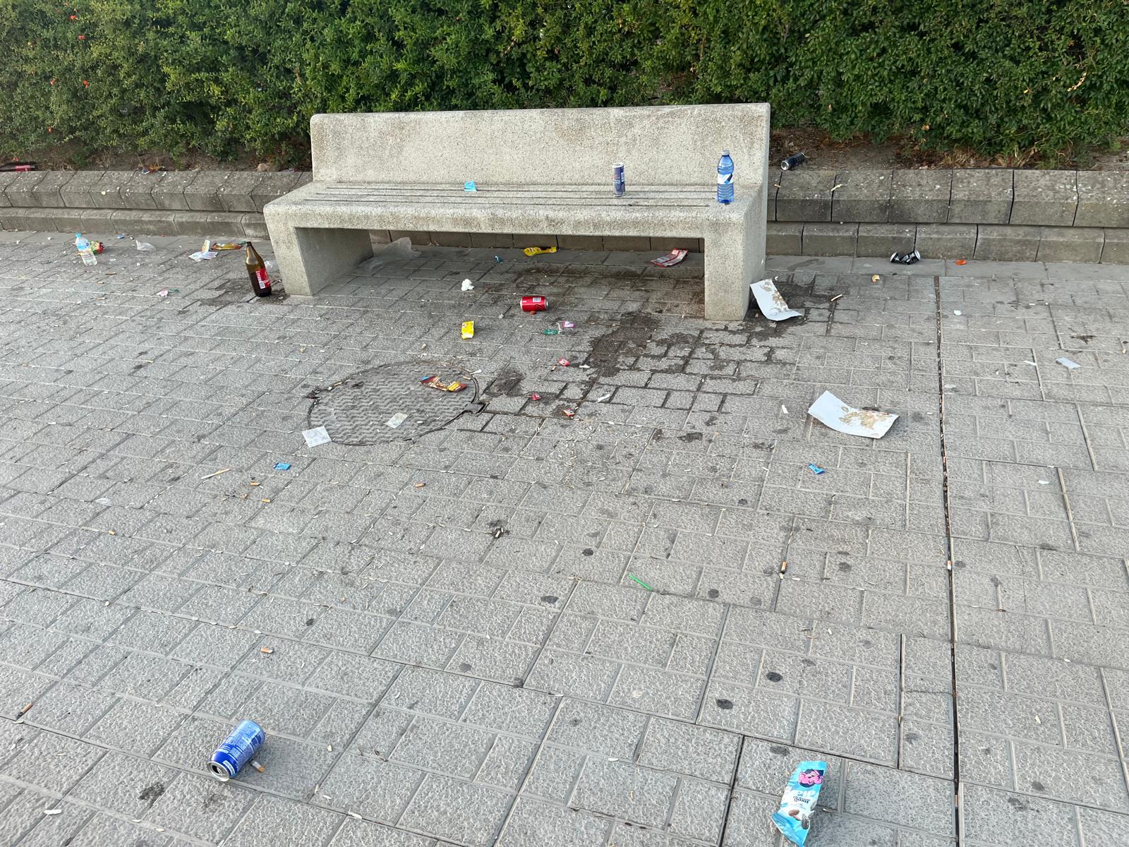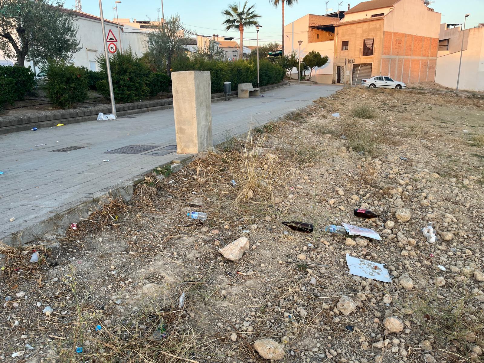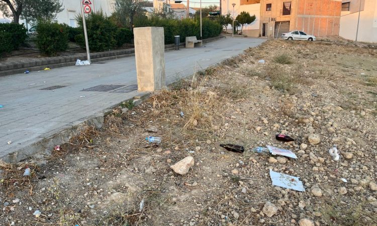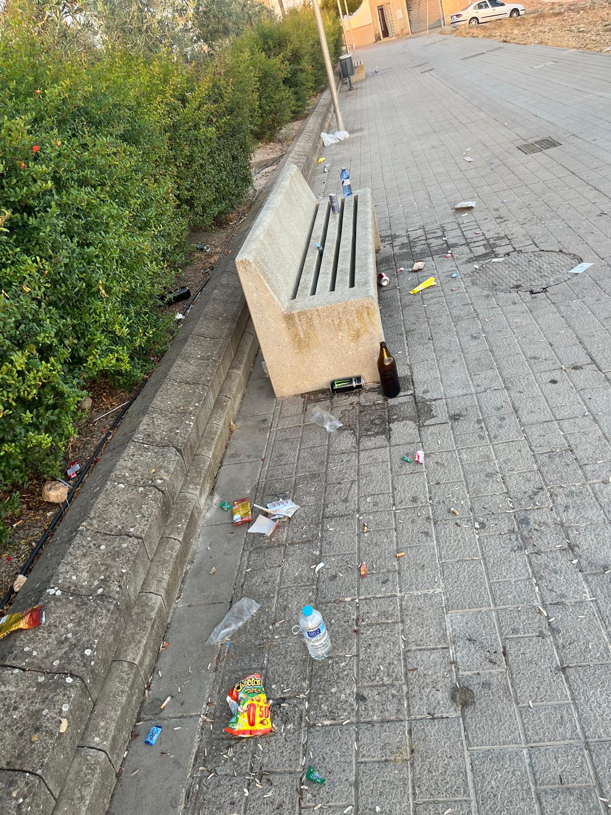 Con este tipo de actos no solamente ensuciamos la imagen de nuestro pueblo, sino que además, se puede llegar a provocar algún tipo de accidente ya que el dejar botellas y restos de comida en el suelo constituye un peligro y puede causar daños a otros vecinos y vecinas.