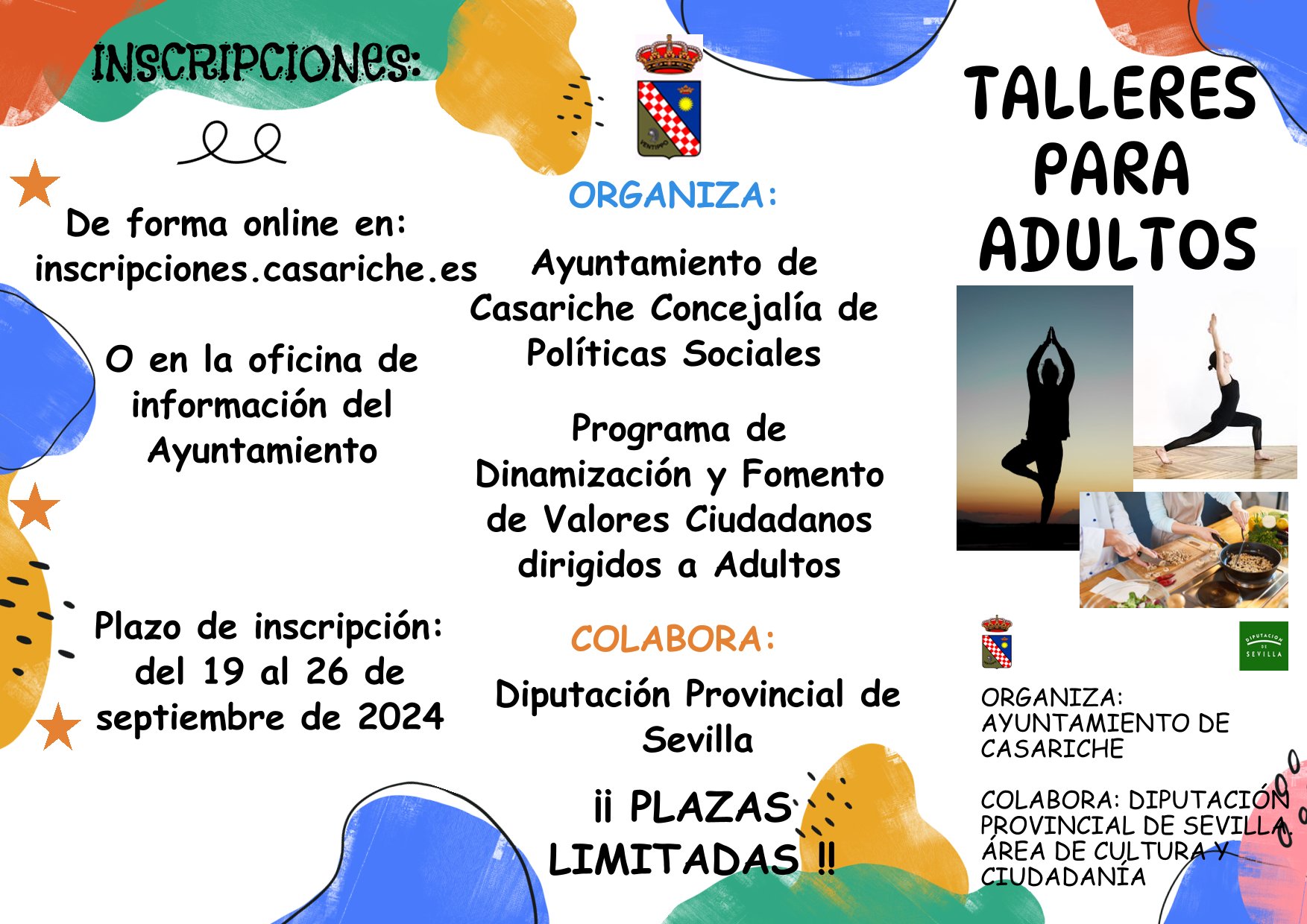 Las inscripciones se pueden realizar ya tanto de forma online en https://inscripciones.casariche.es/ como en la Oficina de Información de nuestro Ayuntamiento.