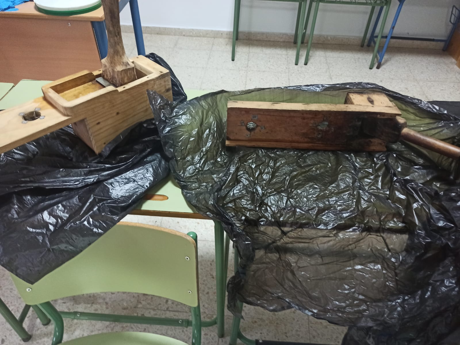- 1ª Fase: Partir Aceitunas: desarrollada el 12 (martes) y 13 (miércoles) de noviembre, en horario de 9:00 a 13:30 h. Durante dichos días las 24 clases del centro fueron pasando por la antigua Aula de Música, en la que las personas voluntarias y la Técnica de Igualdad del Ayuntamiento de Casariche enseñaron al alumnado a partir aceitunas. Cada clase trajo su tarro, el cual fue llenado de las aceitunas partidas por ellas y ellos, utilizando dos métodos diferentes. Durante diez días cada clase tuvo diariamente que cambiar el agua de la aceitunas según indicaciones.