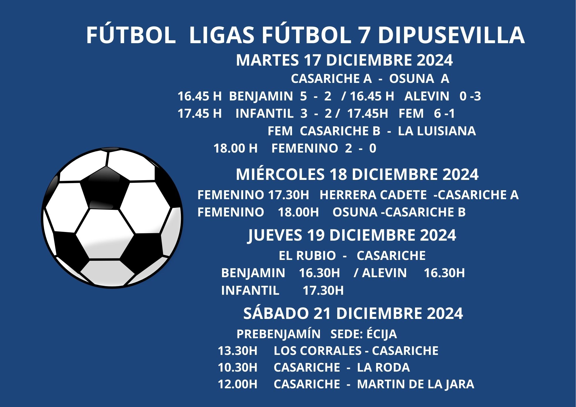 Hoy miércoles 18 de diciembre, juegan fuera los dos equipos femeninos de fútbol, Casariche A contra Herrera Cadete y Casariche B contra Osuna.